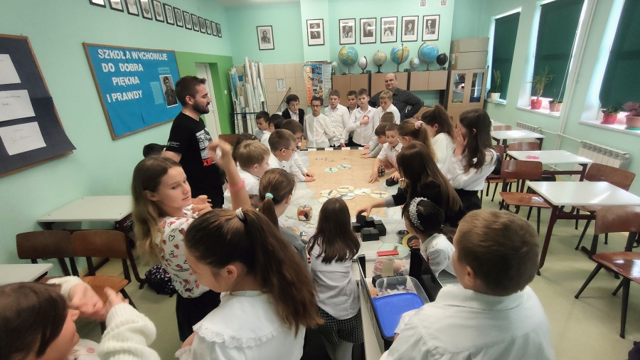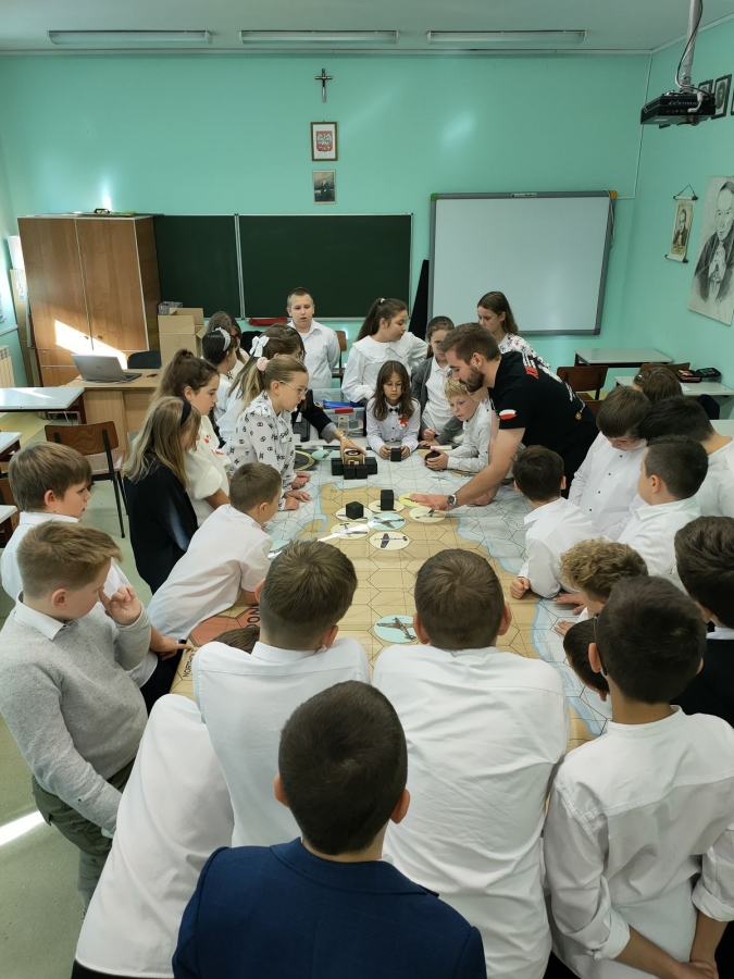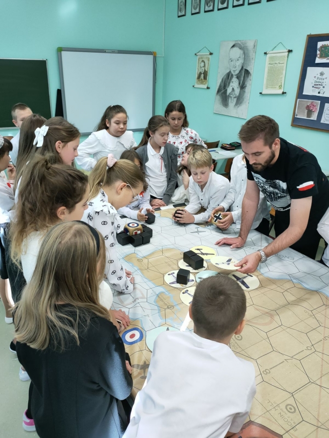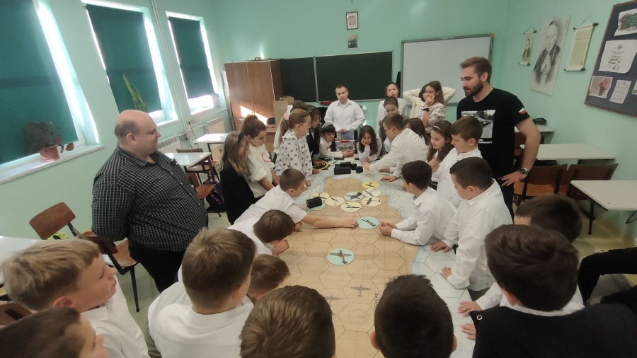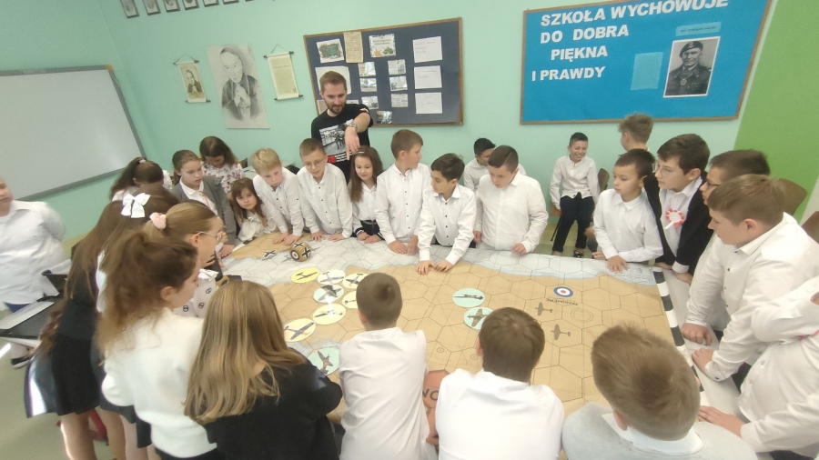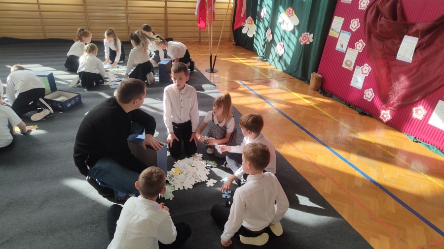 Kolejnym elementem obchodów był zorganizowany po raz pierwszy w naszej szkole „Niepodległościowy Dzień Gier Edukacyjnych”. Dzięki współpracy z Krakowskim Odziałem Instytutu Pamięci Narodowej, pracownicy i edukatorzy Oddziałowego Biuro Edukacji Narodowej IPN w Krakowie przeprowadzili wśród uczniów klas I – VIII warsztaty a następnie turnieje planszowych gier edukacyjnych o tematyce historycznej. Dodatkowo uczniowie klas I – III obejrzeli film przedstawiający losy misia „Wojtka”, niedźwiedzia brunatnego, maskotki 2 Korpusu Polskiego dowodzonego w czasie II wojny światowej przez gen. Władysława Andersa.