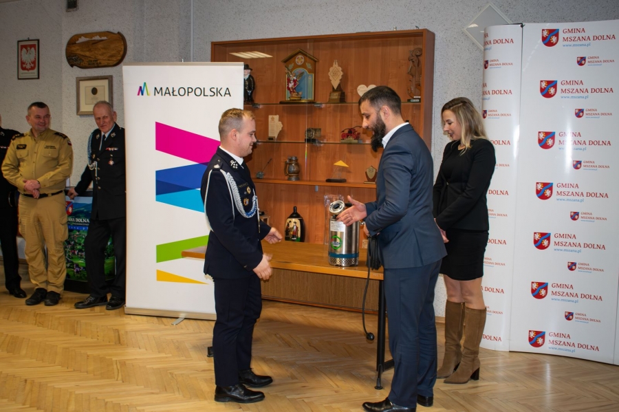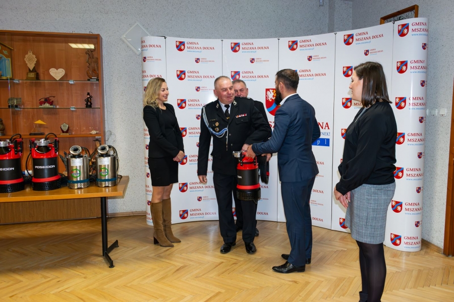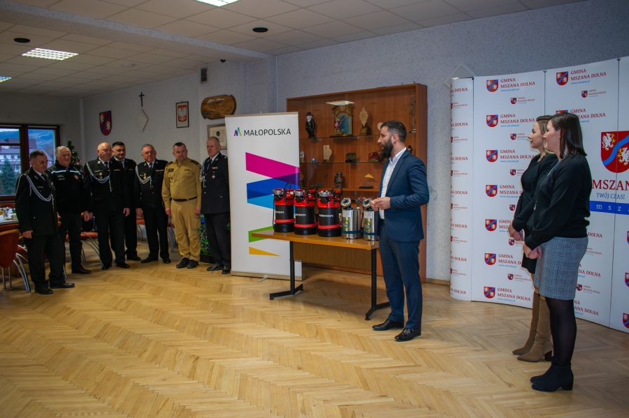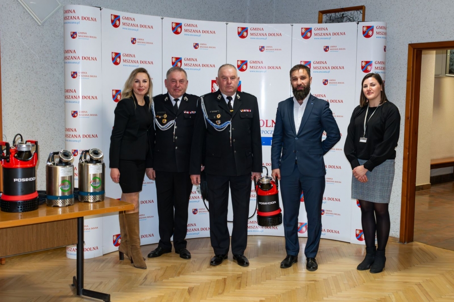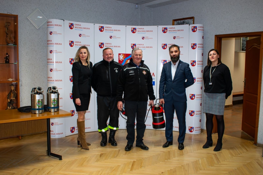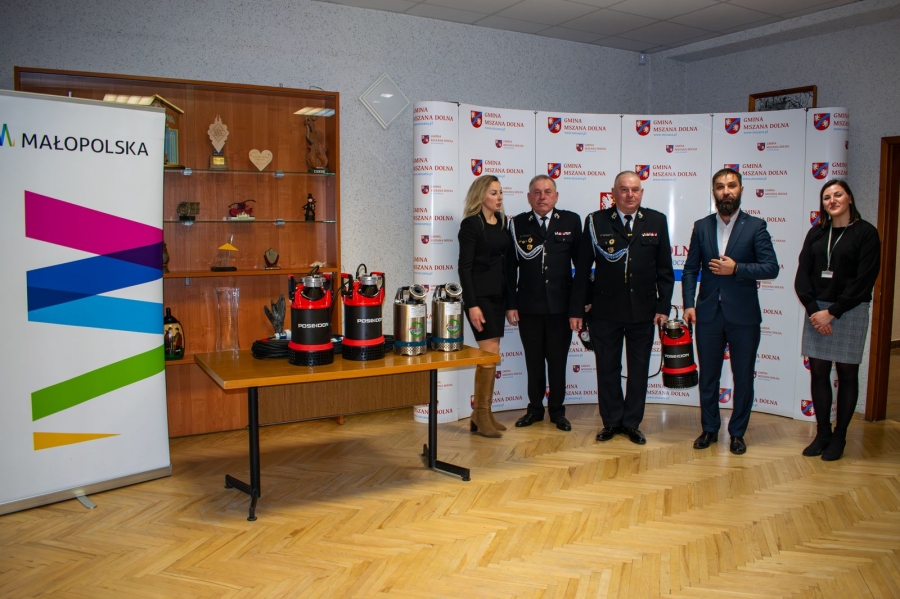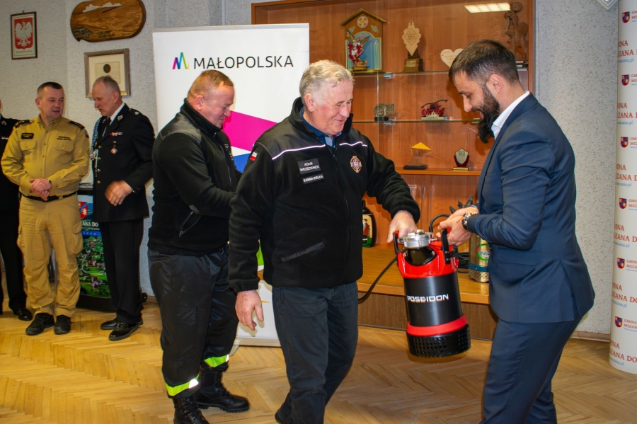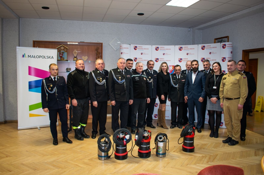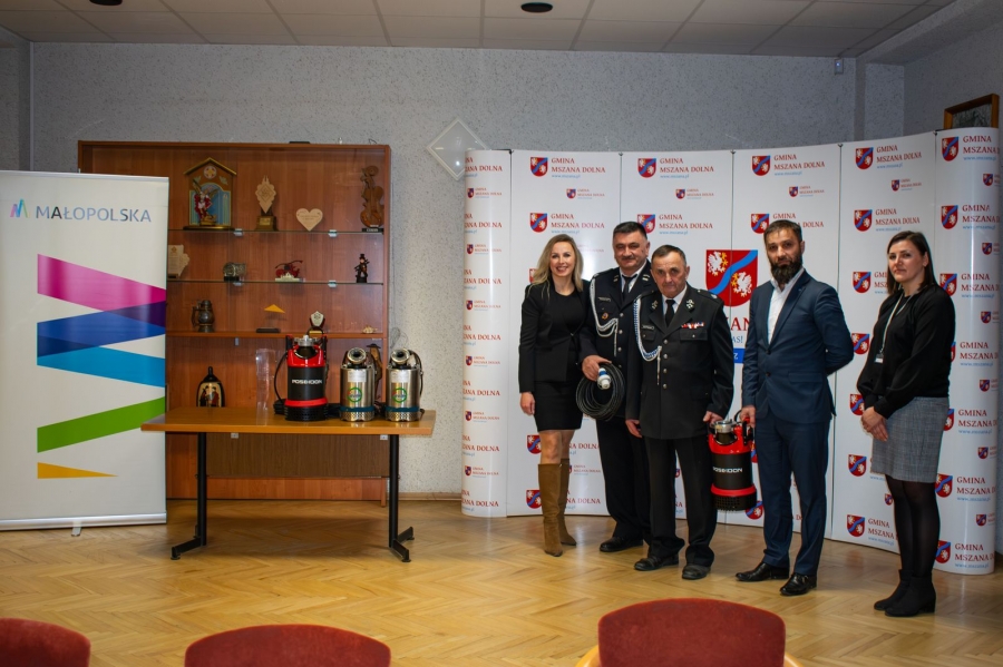 W dniu 20 grudnia 2024r. w Urzędzie Gminy Mszana Dolna odbyło się przekazanie pomp dla Ochotniczej Straży Pożarnej w Kasinie Wielkiej, Ochotniczej Straży Pożarnej w Rabie Niżnej, Ochotniczej Straży Pożarnej w Mszanie Górnej, Ochotniczej Straży Pożarnej w Olszówce oraz Ochotniczej Straży Pożarnej w Łostówce dofinansowanych ze środków Województwa Małopolskiego oraz Urzędu Gminy Mszana Dolna w ramach projektu „Pomoc finansowa dla gmin z przeznaczeniem dla jednostek OSP – zapobieganie skutkom powodzi”. Łączna wartość projektu wyniosła 32 521,42 zł, w tym dofinansowanie z funduszy Województwa Małopolskiego kwota 24 390 ,00 zł oraz ze środków własnych Urzędu Gminy kwota 8 131,42 zł