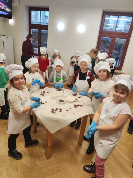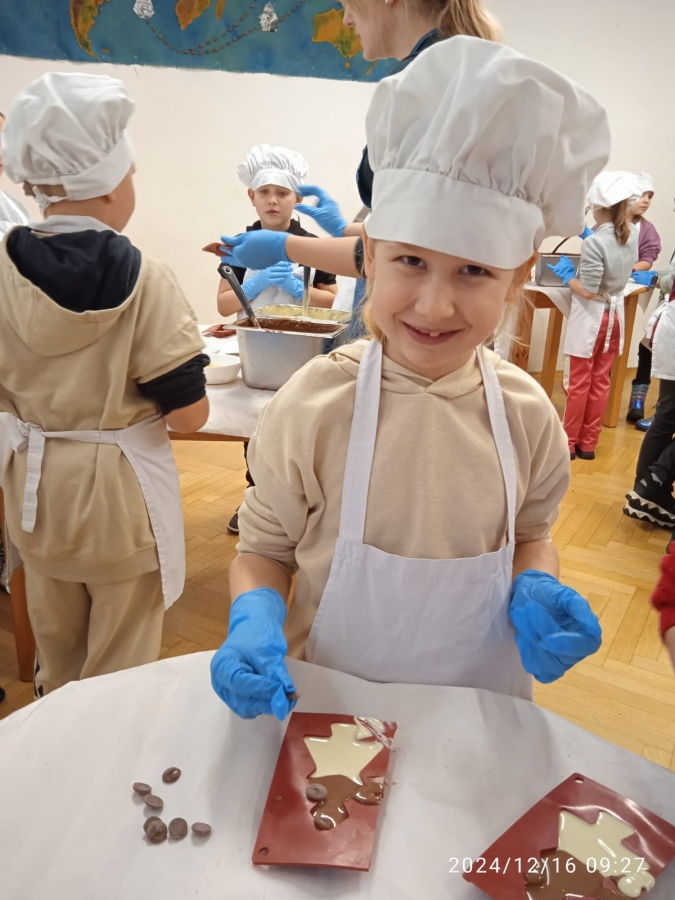 W świecie słodkości wszyscy czuli się bardzo dobrze, a własnoręcznie wykonane świąteczne czekolady, praliny i owocowe serduszka w polewie czekoladowej sprawiły im bardzo dużo frajdy – informuje opiekunka grupy. Nie zabrakło też czasu na naukę. Prowadząca spotkanie przekazała uczniom wiele informacji na temat kakaowca i produkcji słodkich tabliczek. Po warsztatach grupa udała się do kina, gdzie mogła obejrzeć nowe przygody Vaiany i Maui – głównych bohaterów bajki Disneya.
