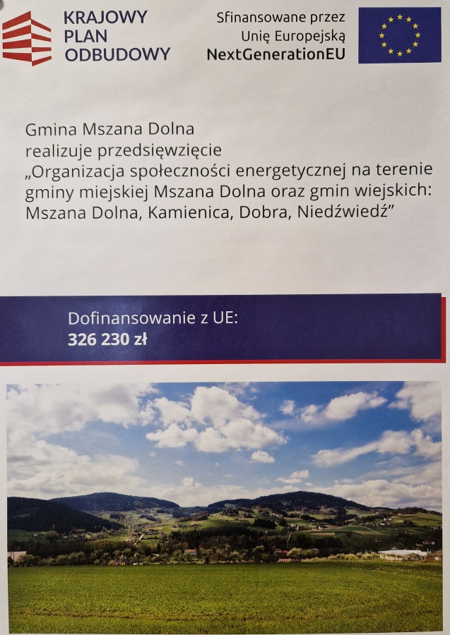 w ramach Inwestycji B2.2.2/G1.1.2 Krajowego Planu Odbudowy i Zwiększania Odporności (KPO): Instalacje OZE realizowane przez społeczności energetyczne, Część A (wsparcie przedinwestycyjne).
