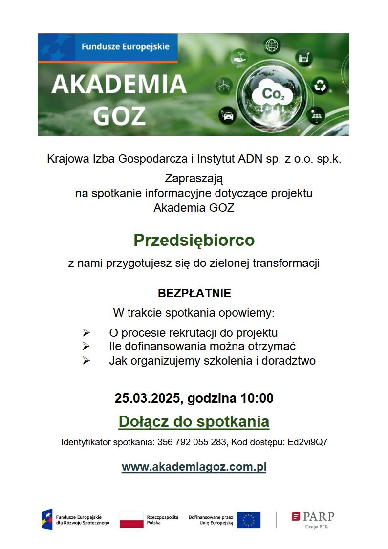 Zaproszenie na spotkanie informacyjne online dotyczące projektu Akademia GOZ