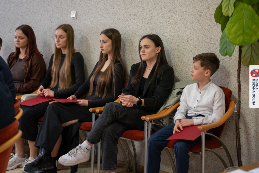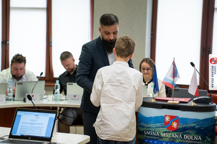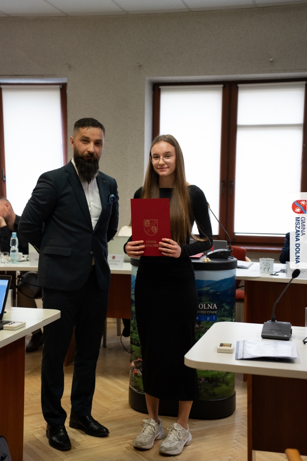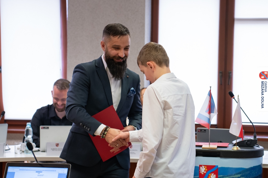 Wyczytując osiągnięcia Aleksandry Kołodziej, Mateusza Szczęsnowskiego, Jakuba Karpierza, Aleksandry Karpierz, Pawła Karpierza, Karoliny Szczęsnowskiej, Martyny Uchacz, Angeliki Luźniak, Ewy Murzyn, Tomasza Gackowca i Tomasza Cieżaka gospodarz Gminy gratulował im sukcesów i życzył kolejnych triumfów oraz wytrwałości w realizacji kolejnych celów.