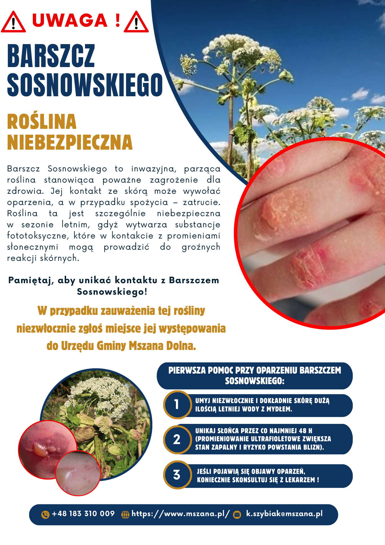 Informacje związane z możliwym wystąpieniem Barszczu Sosnowskiego na terenie Gminy Mszana Dolna.