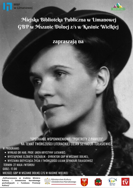 Serdecznie zapraszamy na wyjątkowe spotkanie wspomnieniowe „Portrety z pamięci”, poświęcone naszej rodzimej pisarce Lilian Seymour-Tułasiewicz. Wydarzenie odbędzie się 27 maja 2025 roku o godz. 17:00 w Kasinie Wielkiej (OSP / sala prób).