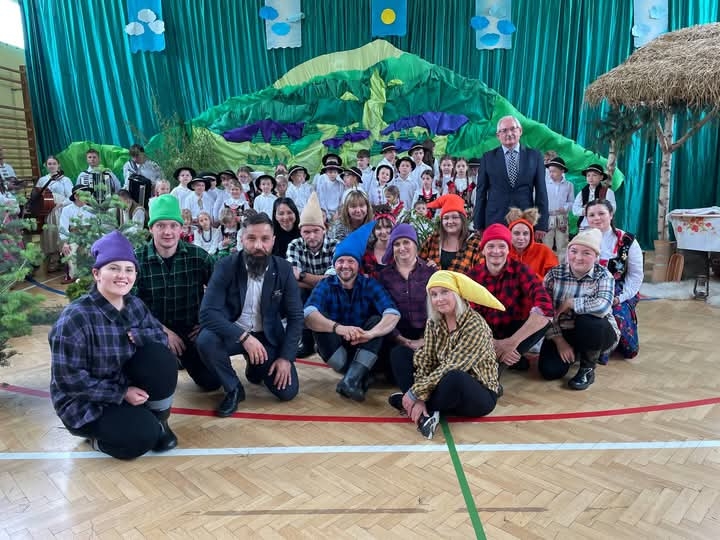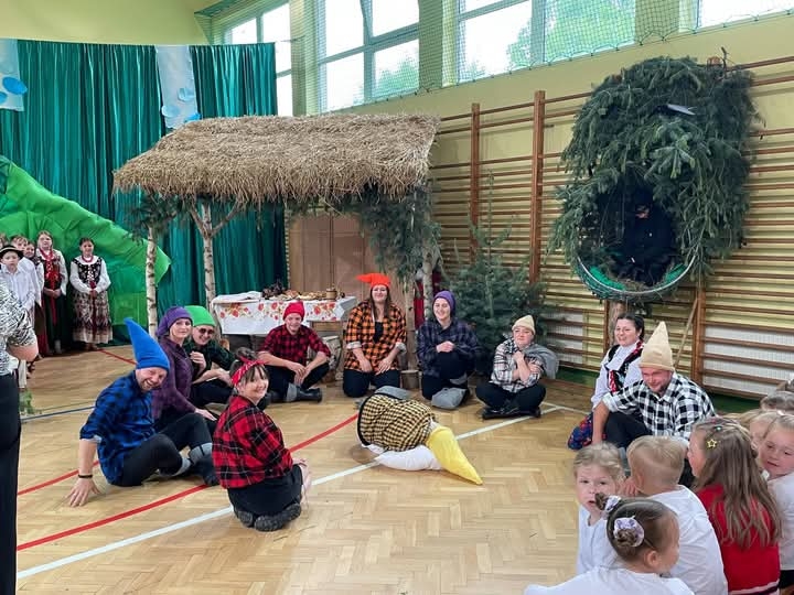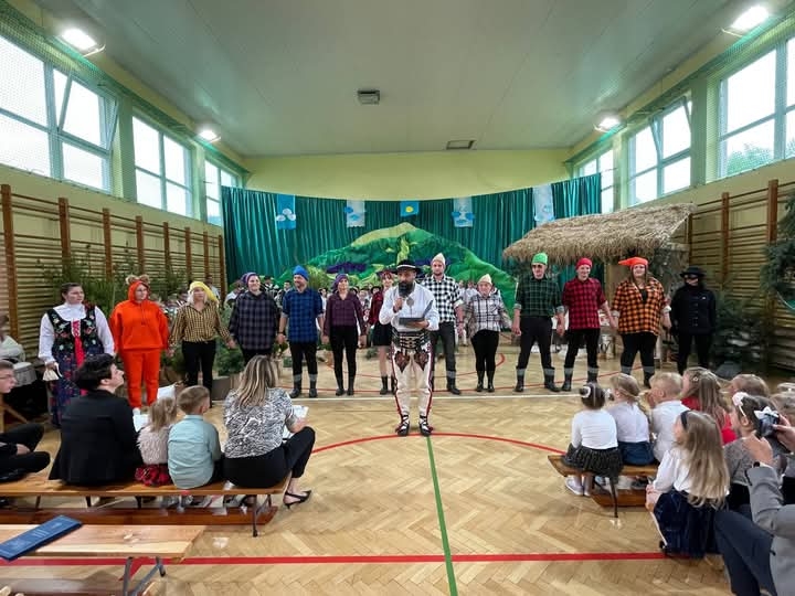 Ogromną niespodzianką był występ grupy rodziców, którzy wcielili się w postacie z bajki “O krasnoludkach i sierotce Marysi” autorstwa naszej patronki, Marii Konopnickiej. Ich występ wywołał salwy śmiechu, wzruszenia i ogromny aplauz. W barwnych strojach i z wielką swobodą sceniczną pokazali, że współpraca szkoły z rodzicami może przynosić niezwykłe efekty.