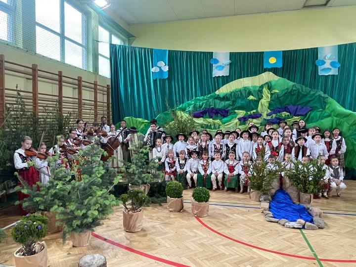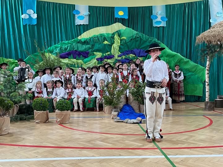 Centralnym punktem uroczystości była przepiękna akademia, przygotowana z wielkim sercem i pasją przez Panią Jadwigę Borowiecką. Dzięki Jej zaangażowaniu i artystycznemu kunsztowi na szkolnej scenie zagościł zespół regionalny “Mali Zagórzanie”, który zaprezentował barwny i poruszający występ. Stroje, muzyka, śpiew i taniec przeniosły wszystkich uczestników w świat góralskich tradycji i piękna naszej rodzimej kultury.
