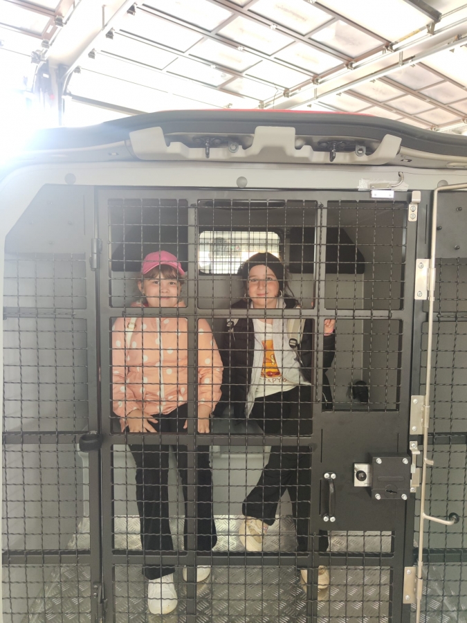Na miejscu zostali oprowadzeni po placu, gdzie mogli obserwować pokaz przygotowany przez służby mundurowe. Zaprezentowali oni, jak wygląda ich codzienna służba, zademonstrowali także wykorzystywany przez nich sprzęt, w tym pojazdy służbowe, środki łączności oraz broń, m.in. pistolety, które uczniowie mogli zobaczyć z bliska. Uczestnicy poznali tajniki szkolenia psów tropiących narkotyki oraz materiały wybuchowe, mogli sami obserwować tresurę a nawet spróbować swoich sił w wydawaniu komend czworonogom. Dużym zainteresowaniem cieszył się również punkt, w którym każdy mógł wykonać swoje odciski palców, wypełniając kartę daktyloskopijną - było to zarówno edukacyjne, jak i bardzo atrakcyjne dla młodzieży. Wizyta zachwyciła uczniów, z wielkim zainteresowaniem słuchali funkcjonariuszy i zadawali wiele pytań. Tego typu wycieczki są doskonałą okazją do poszerzania wiedzy i rozwijania zainteresowań uczniów w praktyczny sposób. Uczniowie wraz z opiekunami wyrażają słowa wdzięczności Panu Krzysztofowi Nawarze za zaproszenie na „Dzień otwarty” Karpackiego Oddziału Straży Granicznej w Nowym Sączu. Z pewnością wrażenia z wizyty pozostaną na długo w pamięci uczestników wycieczki.