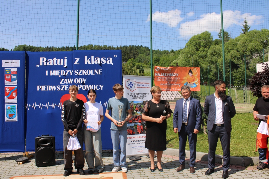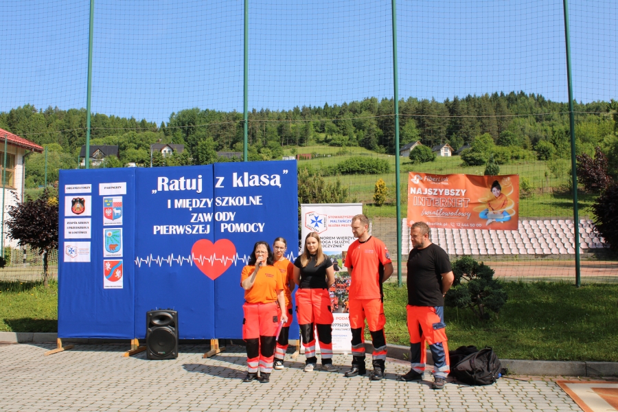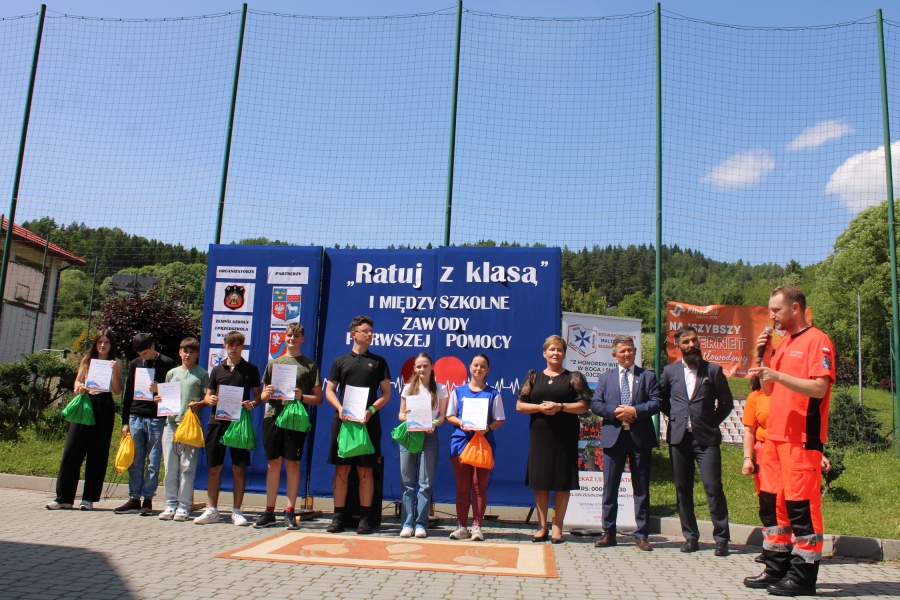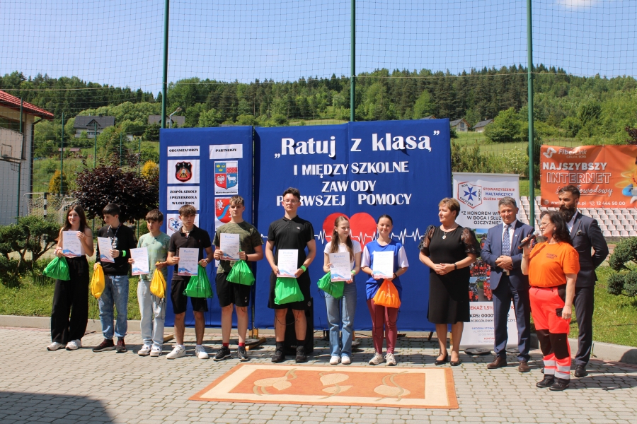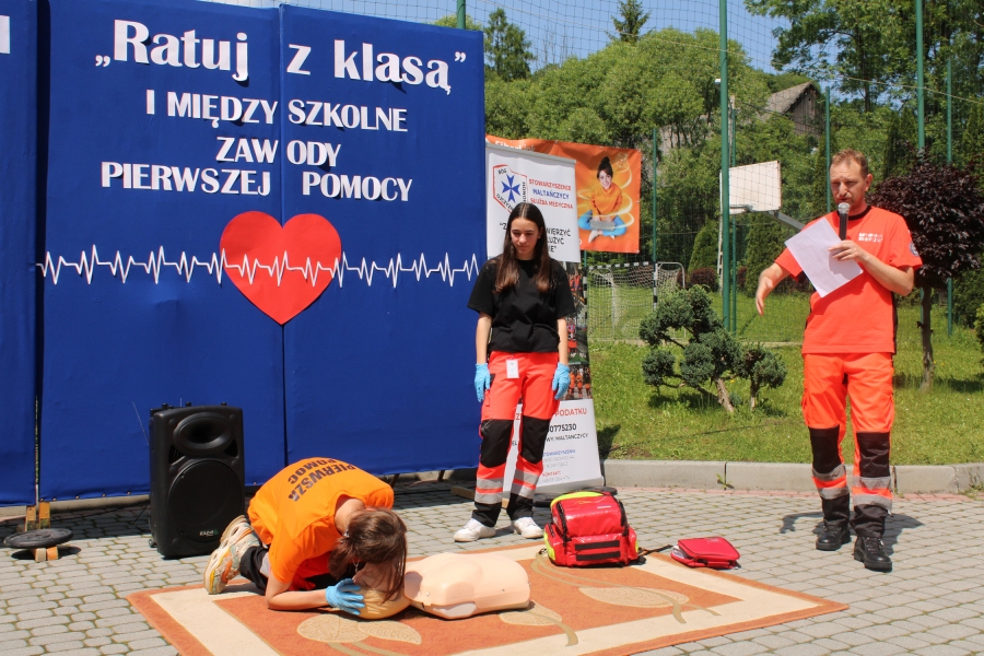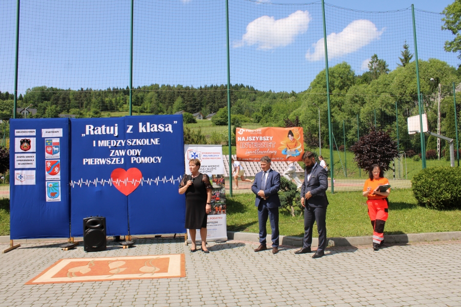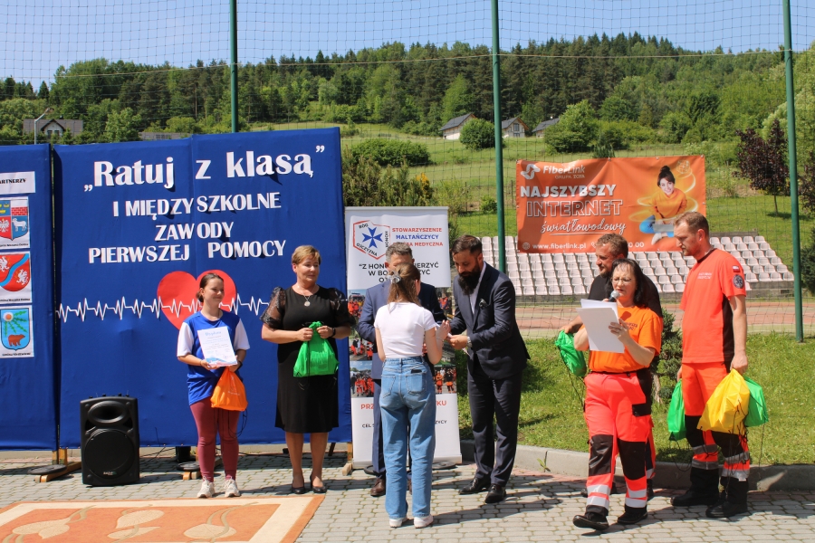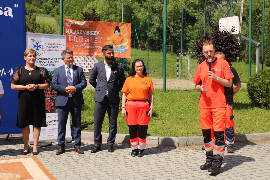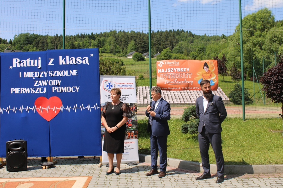 w Jaworznej. Patronat nad zawodami objęli Wójt Gminy Mszana Dolna, Wójt Gminy Niedźwiedź oraz Burmistrz Miasta Mszana Dolna, podkreślając tym samym znaczenie edukacji w zakresie pierwszej pomocy w lokalnej społeczności.