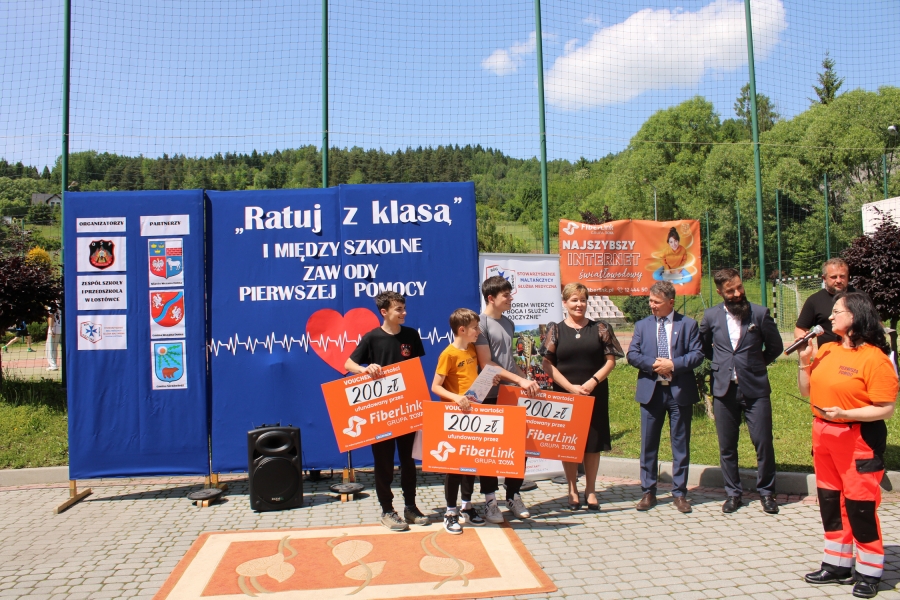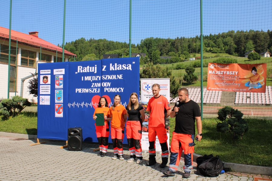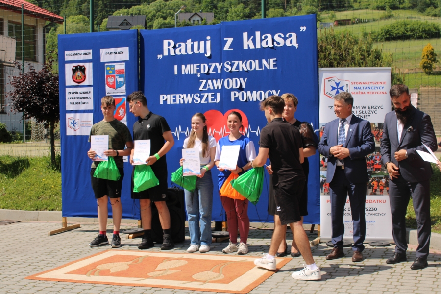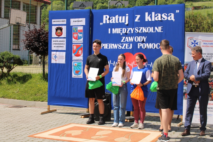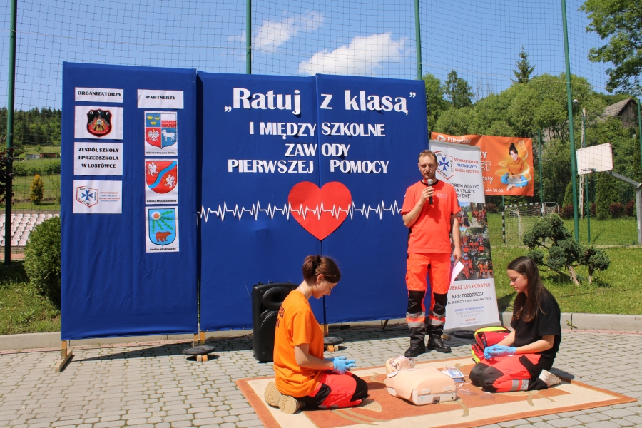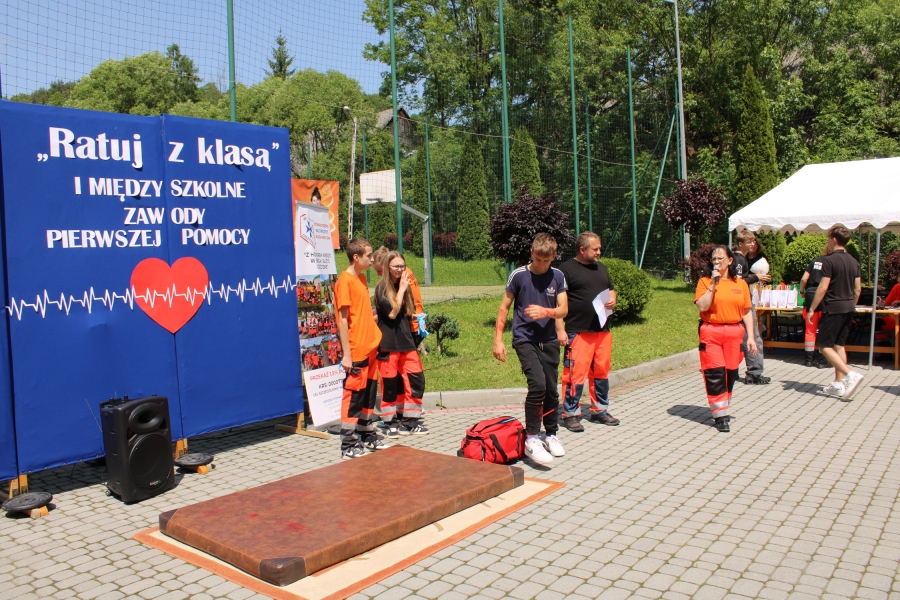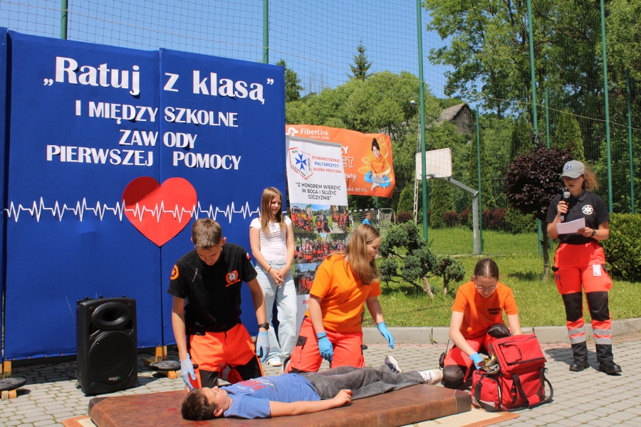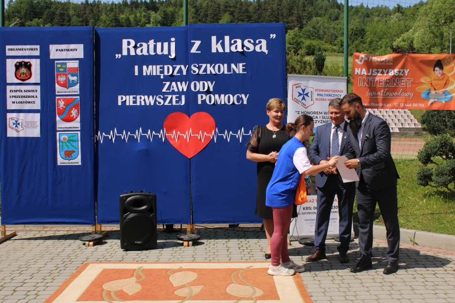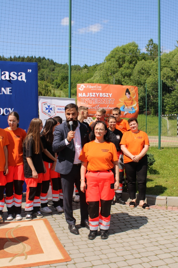 w Jaworznej. Patronat nad zawodami objęli Wójt Gminy Mszana Dolna, Wójt Gminy Niedźwiedź oraz Burmistrz Miasta Mszana Dolna, podkreślając tym samym znaczenie edukacji w zakresie pierwszej pomocy w lokalnej społeczności.