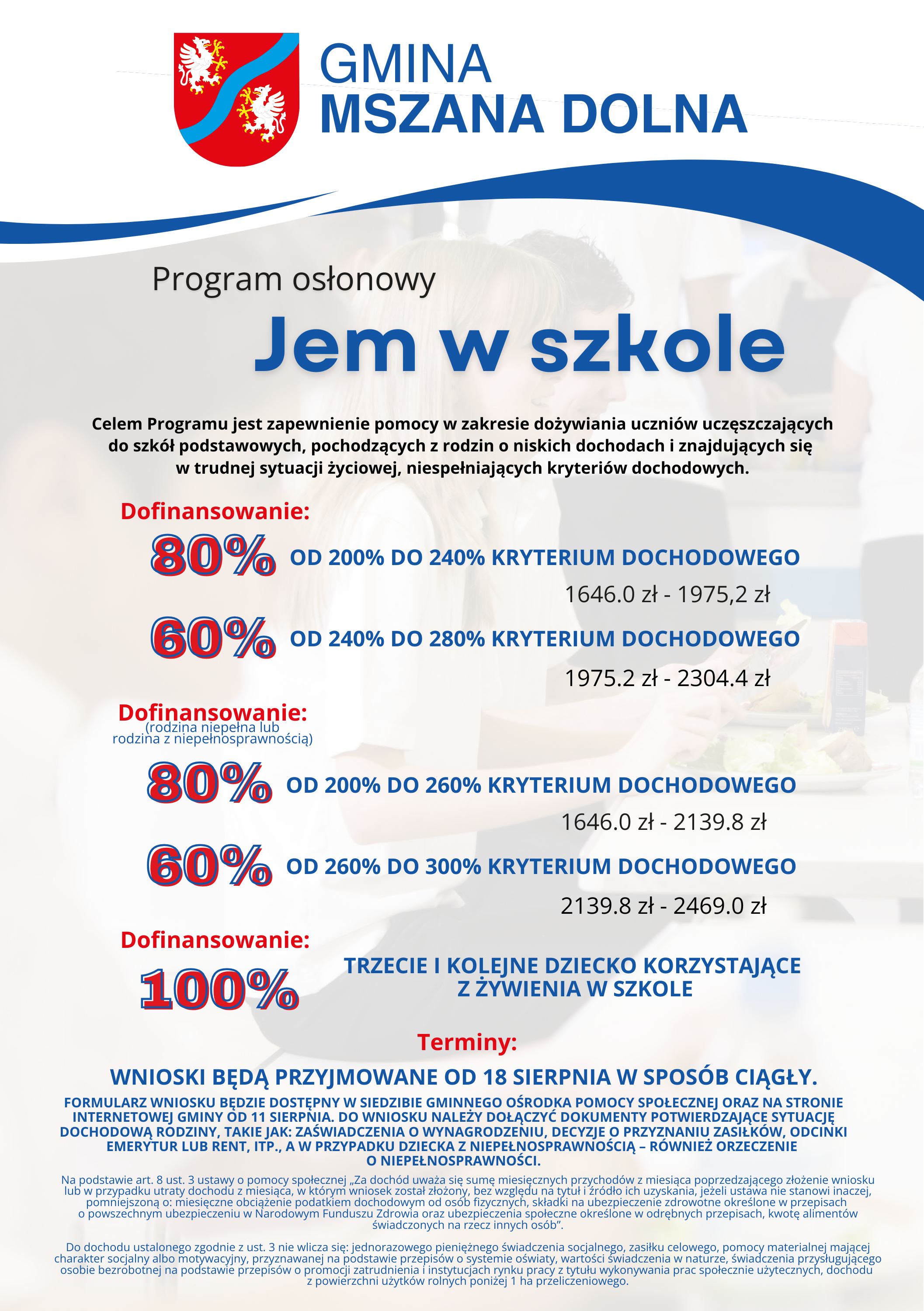 Program osłonowy „Jem w szkole” – dofinansowanie posiłków dla uczniów szkół podstawowych