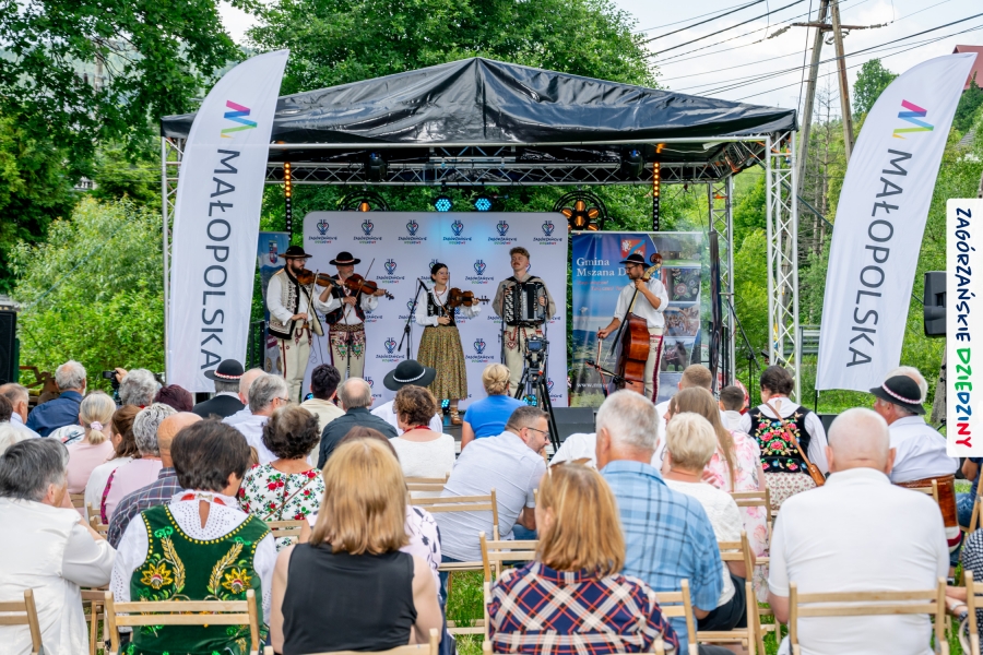 Piękna pogoda, dobra muzyka i kuchnia regionalna, produkty lokalne i niepospieszne biesiadowanie... Czy można dodać do tego coś więcej? My ten ciekawy program uzupełniliśmy prelekcjami dot. tego, co drzewiej Zagórzanie serwowali sobie i swoim gościom na co dzień i od święta oraz zwiedzaniem siedemnastowiecznej świątyni z Zagórzańskim Informatorem Turystycznym. Były też artystyczne warsztaty dla dzieci oraz pokaz gotowania klusek od ucha do ucha... To wyjątkowe spotkanie z żywą kulturą ludową rozpoczęliśmy jednak od wspólnej modlitwy podczas comiesięcznej Zagórzańskiej Mszy św. Pięknie w kościele p.w. św. Marii Magdaleny wybrzmiały głosy muzykujących zagórzańskich rodzin, dla których był to przedsmak popisów scenicznych. Krzysztofy z Mszany Górnej (Pan Boguś to nasze ostatnie odkrycie! Ach, co to za artysta!), SAGA Nawarów z Olszówki, Kuczaje z Lubomierza, Nawary z Kasinki Małej/Zagródca, Szywały z Poręby Wielkiej oraz współorganizatorzy wydarzenia – Kościelnioki z Olszówki (Stowarzyszenie Miłośników Kultury Góralskiej Pod Cyrlom) przypomnieli znane i mniej znane zagórzańskie melodie i przyśpiewki, porwali publiczność do wspólnego śpiewu, zapewnili prawdziwą ucztę duchową dla wszystkich uczestników Festiwalu. Energii do wspólnej zabawy, zwłaszcza nogom, które same rwały się do tańca, dodawały słodkości od Cukierni Babeczka, a upał i zapędy studziły kraftowe Lody i Spółka. O ucztę cielesną zadbały niezastąpione Śwarne Babki z KGW Łętowe szczodrze częstując zagórzańskim dobrem: korpielanką z razowym kołocem oraz pierogami z suszonymi śliwkami. Hitem, jak zwykle zresztą, był pokaz gotowania sapki – to nie tylko widowisko, ale dla wielu również podróż sentymentalna w czasy dzieciństwa… Taką wycieczkę do smaków, o których współcześnie już zapomnieliśmy, zafundowała wszystkim również Monika Kurzeja, etnomuzykolożka i dialektolożka, pracująca na co dzień w Małopolskim Centrum Kultury SOKÓŁ w Nowym Sączu. Z właściwym sobie wdziękiem, dowcipem i błyskotliwością zaprezentowała „Kulinarne dziedzictwo Górali Zagórzańskich z perspektywy dialektologicznej”. Weszła w piękną interakcję ze swoimi słuchaczami i… uruchomiła pracę ślinianek! Marzenia o dobrym, wartościowym i treściwym posiłku podsyciła jeszcze bardziej Józefa Węglarz, gaździna z Łętowego, która z kolei zabrała wszystkich w pachnący, aromatyczny, smaczny i zdrowy świat ziół. Ciekawie opowiedziała o tym, których roślin używali i używają nadal Zagórzanie, aby odpowiednio skomponować wszelkie walory swoich potraw. Dobrze, że na zewnątrz czekał już poczęstunek przygotowany z rodzimej rasy jagnięciny, bo trudno byłoby dotrwać przy tak rozbudzonych apetytach do kolejnej części programu. Jego gwoździem, czyli punktem kulminacyjnym, było zwiedzanie najstarszego zabytku w Gminie Mszana Dolna, zagórzańskiej perełki, czyli kościoła p.w. św. Marii Magdaleny w Kasinie Wielkiej z 1624 r. W tę ciekawą, historyczną podróż zabrał wszystkich chętnych Grzegorz Kubowicz, Zagórzański Informator Turystyczny. Jak on opowiada, zwłaszcza o ołtarzach!