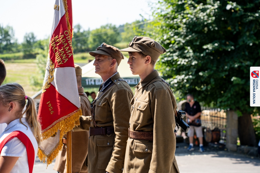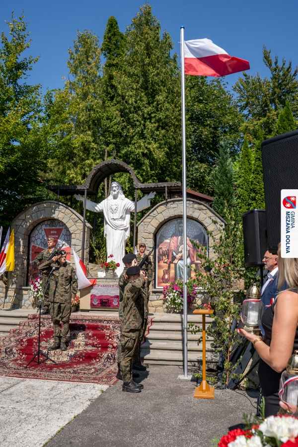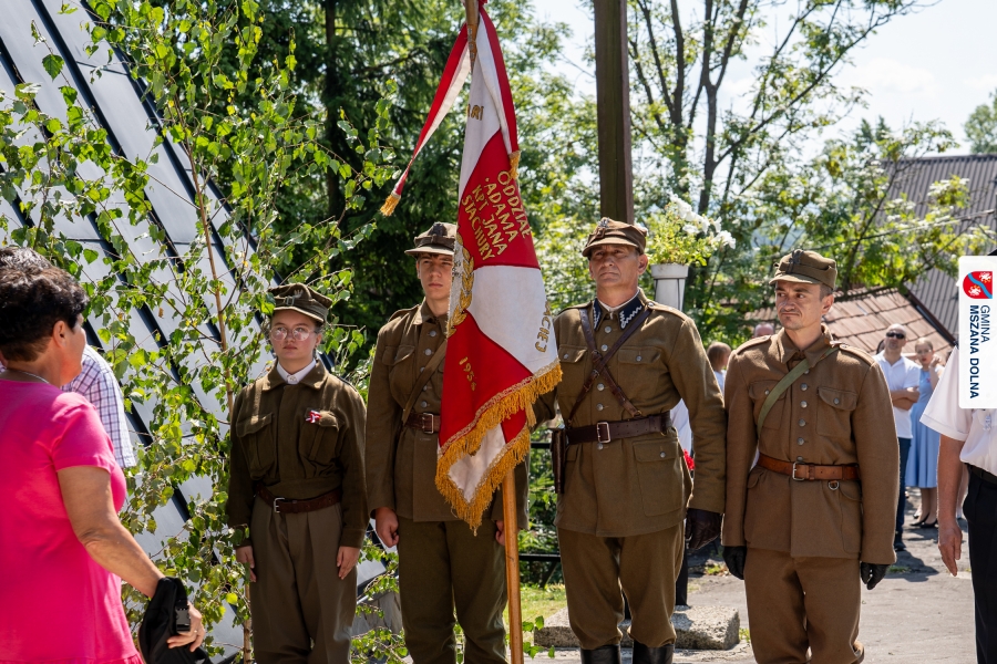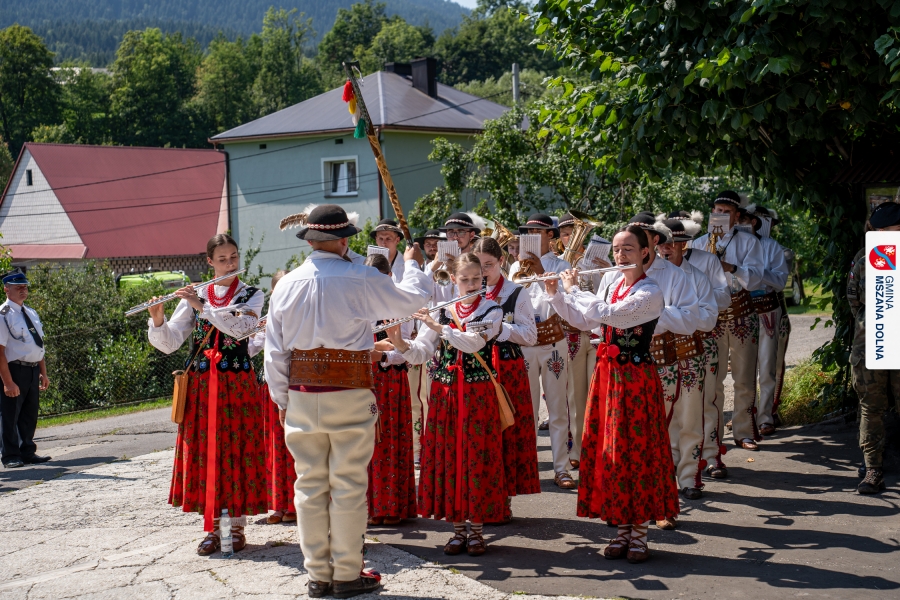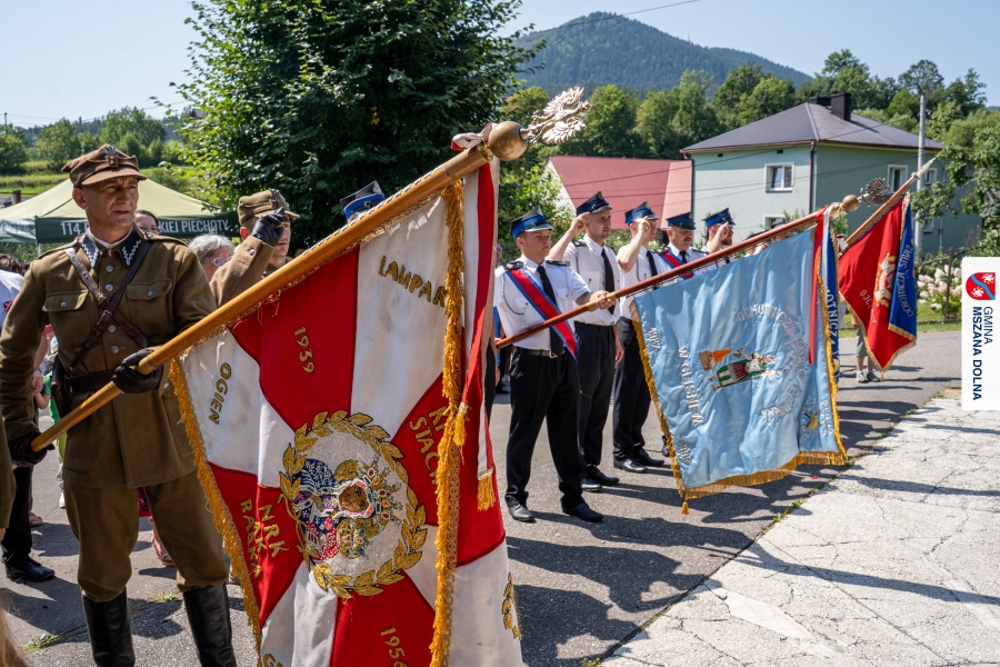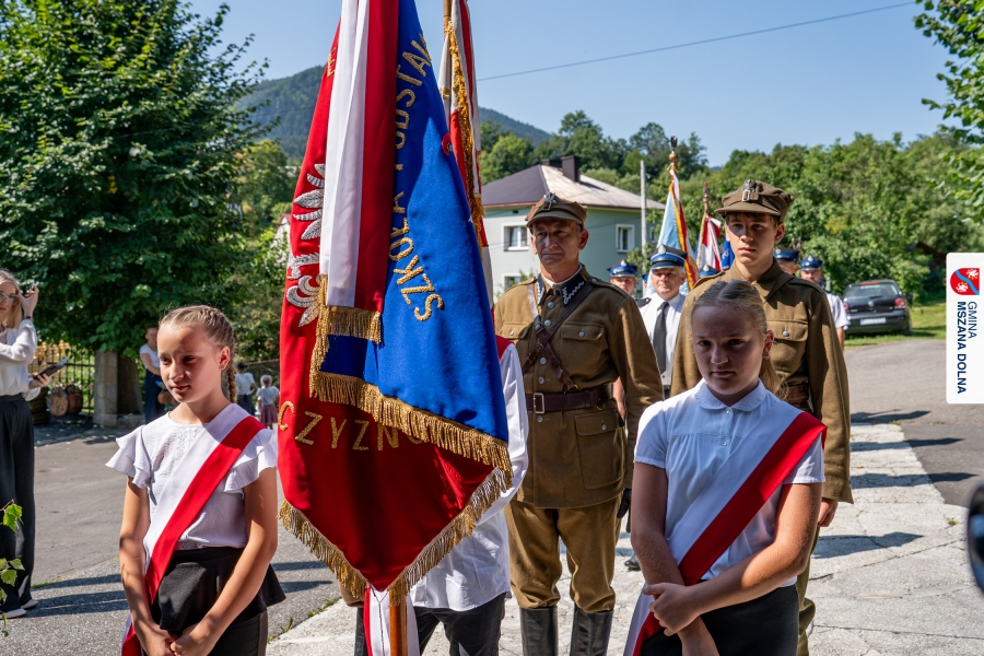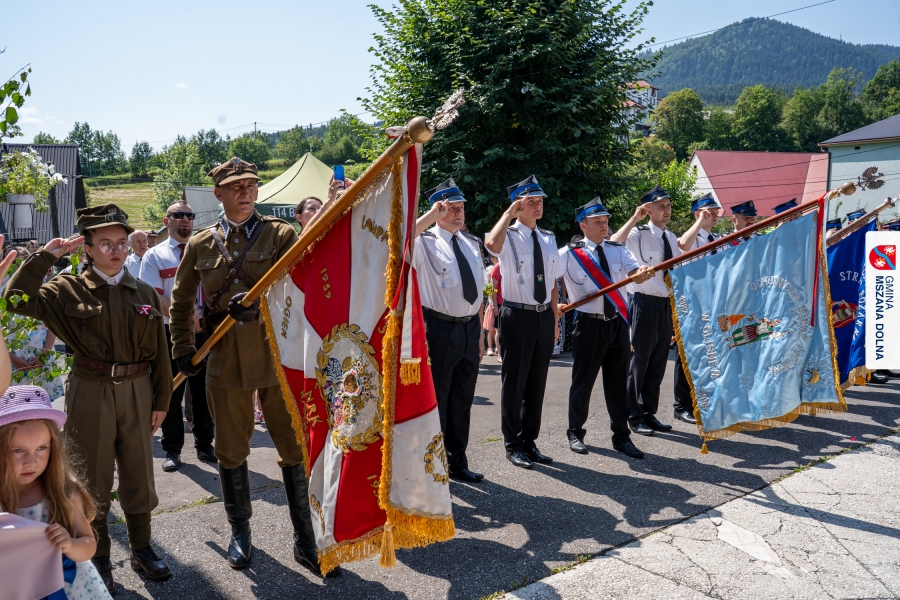 Po zakończeniu Mszy uczestnicy zgromadzili się na placu przed kościołem, gdzie odbyła się dalsza część uroczystości. Hymn Polski odegrała orkiestra Echo Gór, a flagę państwową na maszt wciągnęli strzelcy z Jednostki Strzeleckiej „Strzelec” JS2404 z Mszany Dolnej, oddając hołd bohaterom walki o niepodległość.