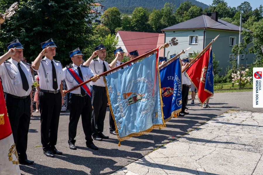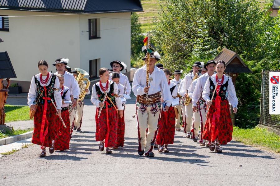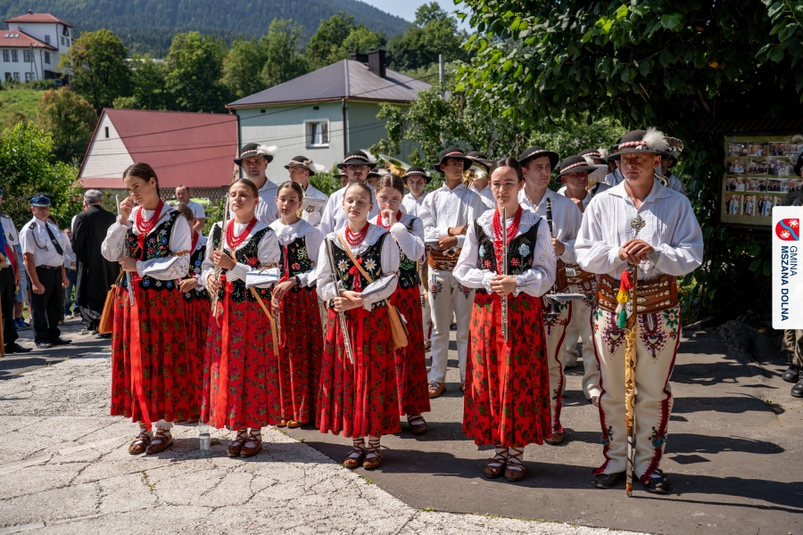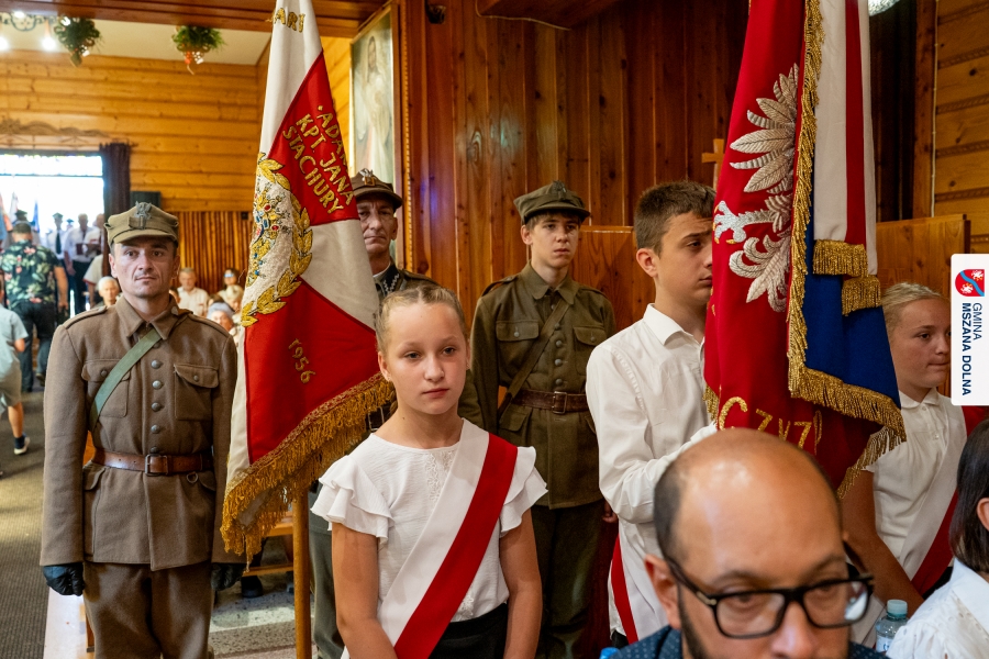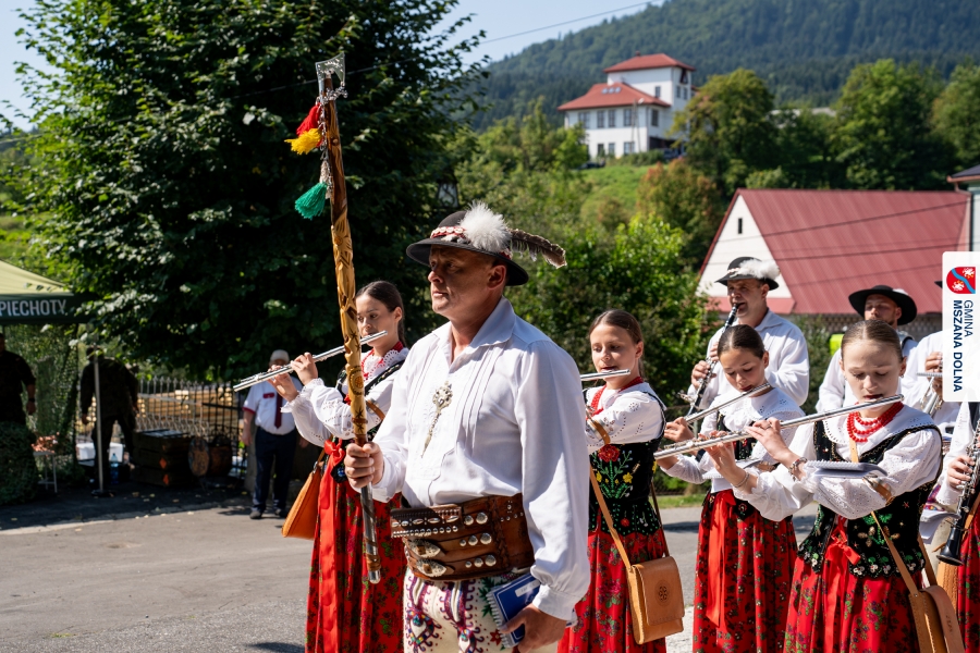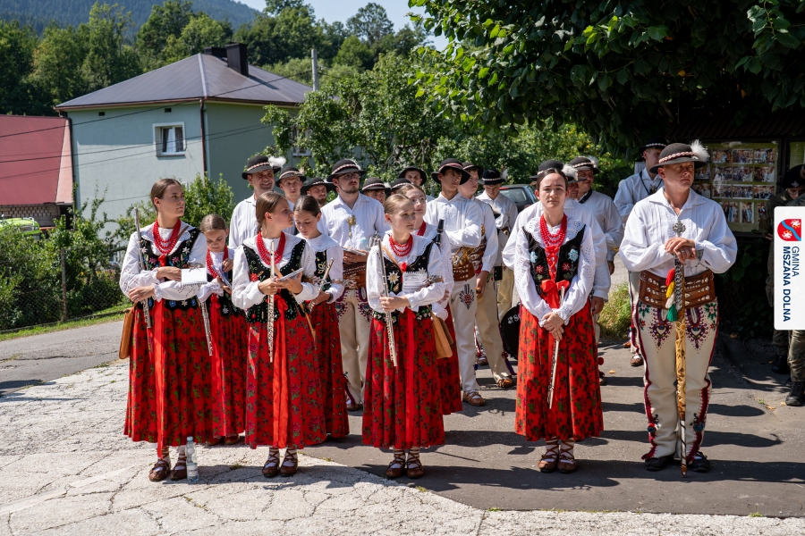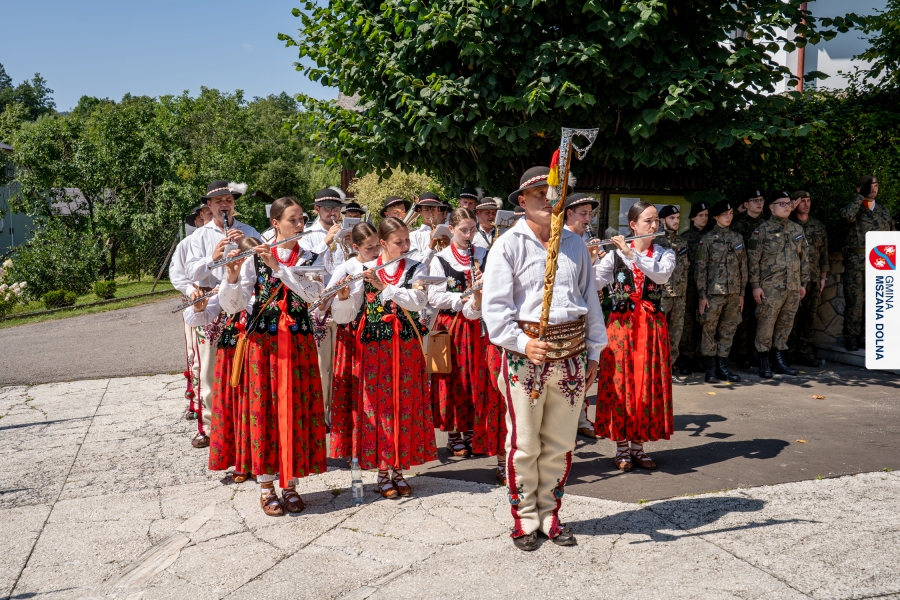 Po zakończeniu Mszy uczestnicy zgromadzili się na placu przed kościołem, gdzie odbyła się dalsza część uroczystości. Hymn Polski odegrała orkiestra Echo Gór, a flagę państwową na maszt wciągnęli strzelcy z Jednostki Strzeleckiej „Strzelec” JS2404 z Mszany Dolnej, oddając hołd bohaterom walki o niepodległość.