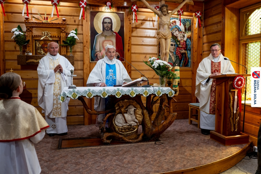 Wydarzenie rozpoczęło się Mszą Świętą w kościele pw. Najświętszego Serca Jezusowego, której przewodniczył pochodzący z Glisnego ks. infułat Jakub Gil. Kazanie wygłosił ks. ppor. Jan Zając, a jako kapłan pomocniczy uczestniczył ks. rektor Andrzej Sawulski. Oprawę muzyczną liturgii jak co roku zapewnił Chór Męski im. ks. Józefa Hajduka z Mszany Dolnej pod dyrekcją Piotra Wójcika oraz Orkiestra Dęta Echo Gór z Kasinki Małej pod przewodnictwem kapelmistrza Wojciecha Szczypki.