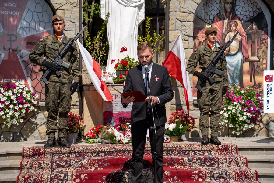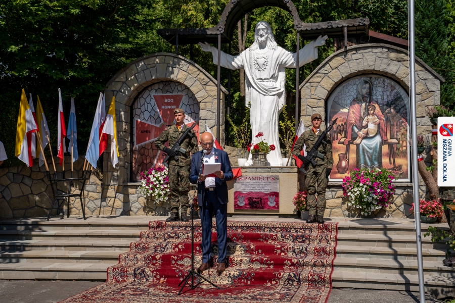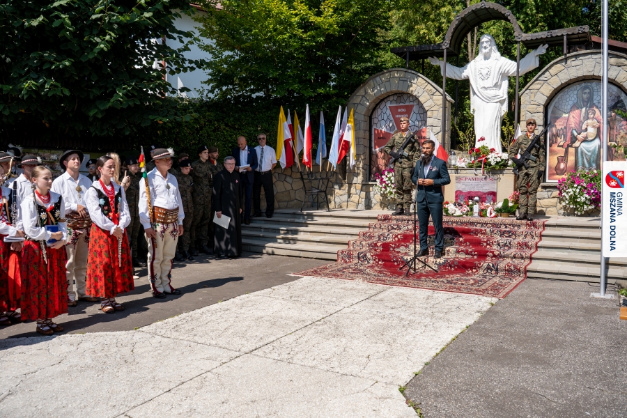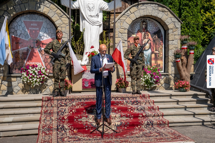 Wójt Gminy Mszana Dolna Mirosław Cichorz, który podziękował wszystkim za przybycie a w szczególności młodzieży i dzieciom, podkreślając, że to właśnie w ich rękach spoczywa przyszłość naszej Ojczyzny. Z uznaniem mówił o tym, że młode pokolenie chce pamiętać i uczestniczyć w takich uroczystościach, co daje nadzieję na zachowanie narodowej tożsamości. Wójt wyraził również wdzięczność wszystkim, którzy przyczynili się do organizacji wydarzenia, a w szczególności ks. rektorowi Andrzejowi Sawulskiemu, za jego 24-letnie oddanie tej uroczystości.