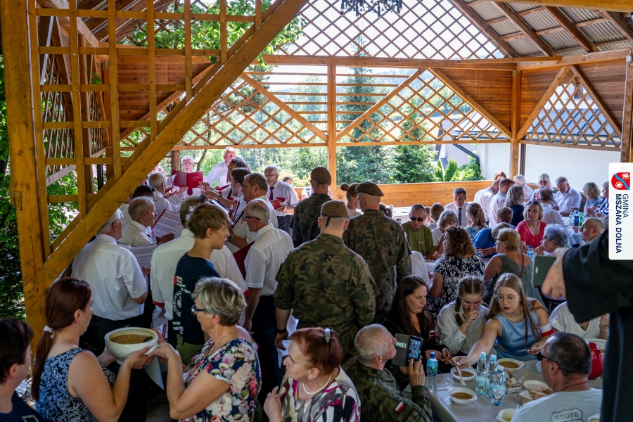 Po oficjalnej części uroczystości uczestnicy święta patriotycznego — wśród których byli także członkowie rodzin kombatantów z różnych stron kraju — spotkali się przy żołnierskiej grochówce. W atmosferze wspólnoty i refleksji wysłuchali pieśni patriotycznych w wykonaniu Chóru Męskiego z Mszany Dolnej, co nadało wydarzeniu wyjątkowy, wzruszający charakter.