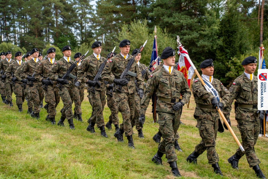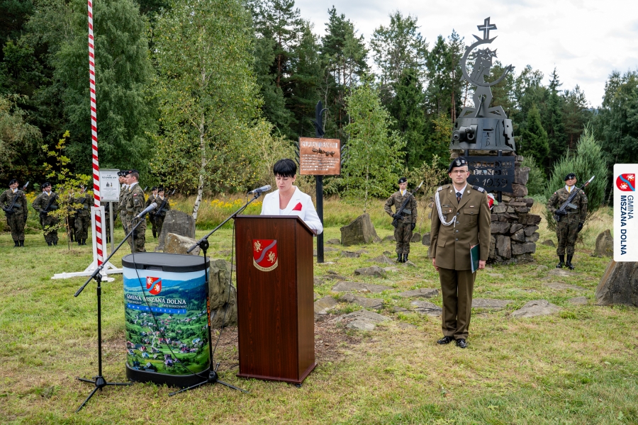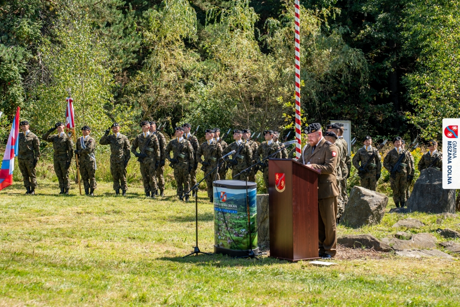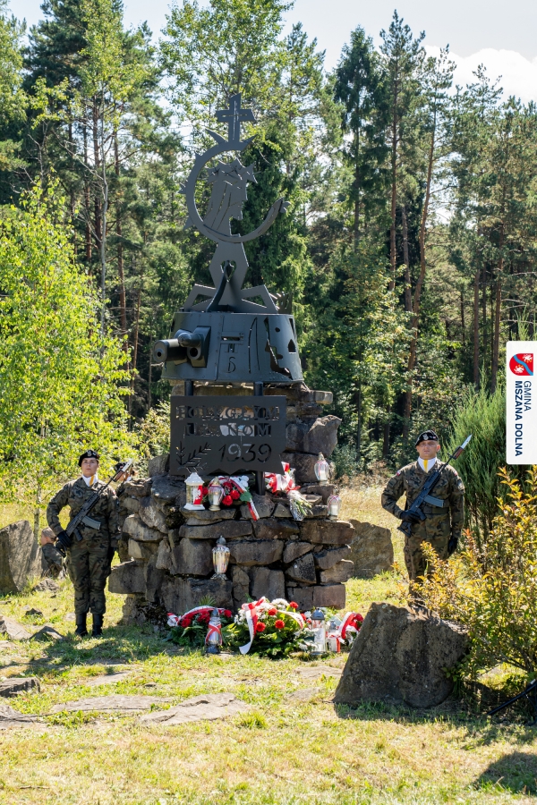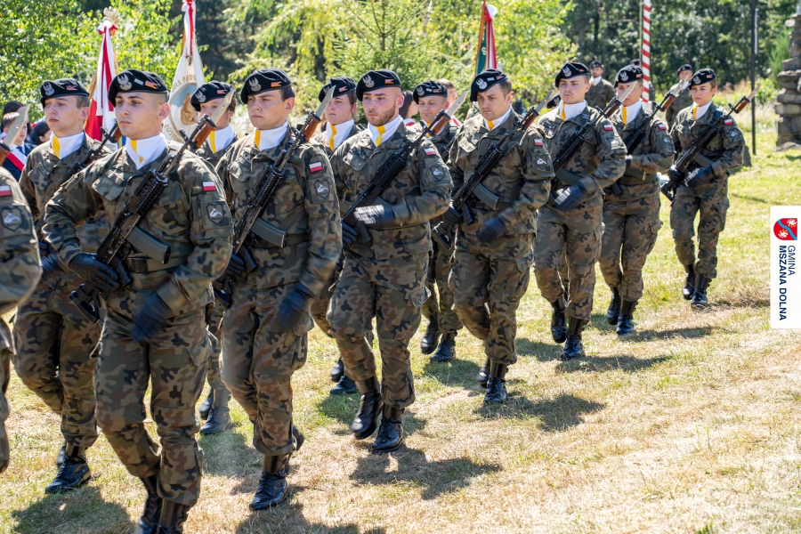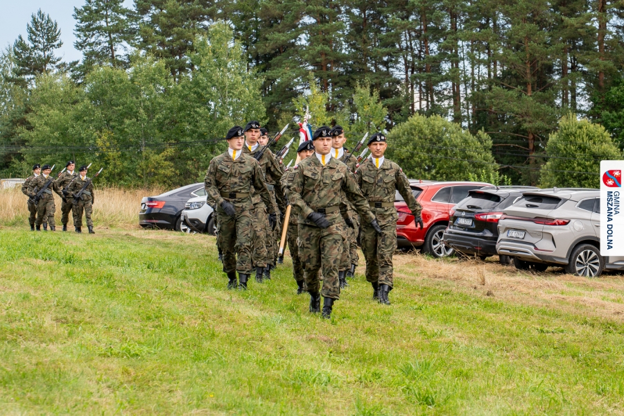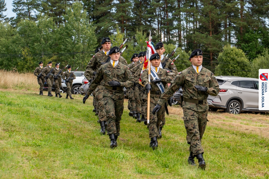 Po Mszy Świętej uczestnicy udali się pod pomnik, gdzie odbyła się główna część uroczystości z udziałem Wojskowej Asysty Honorowej z 10. Brygady Kawalerii Pancernej im. gen. broni Stanisława Maczka ze Świętoszowa. Kompania honorowa, dowodzona przez porucznika Michała Bukowskiego, zaprezentowała uroczysty przemarsz przy dźwiękach „Marszu ułańskiego szyku”, a następnie uczestniczyła w ceremonii podniesienia flagi państwowej.
