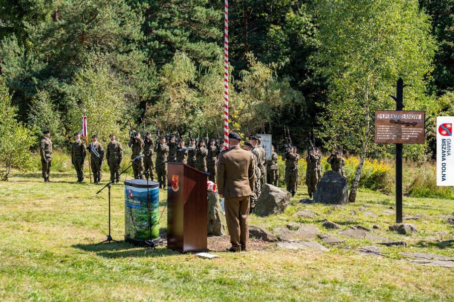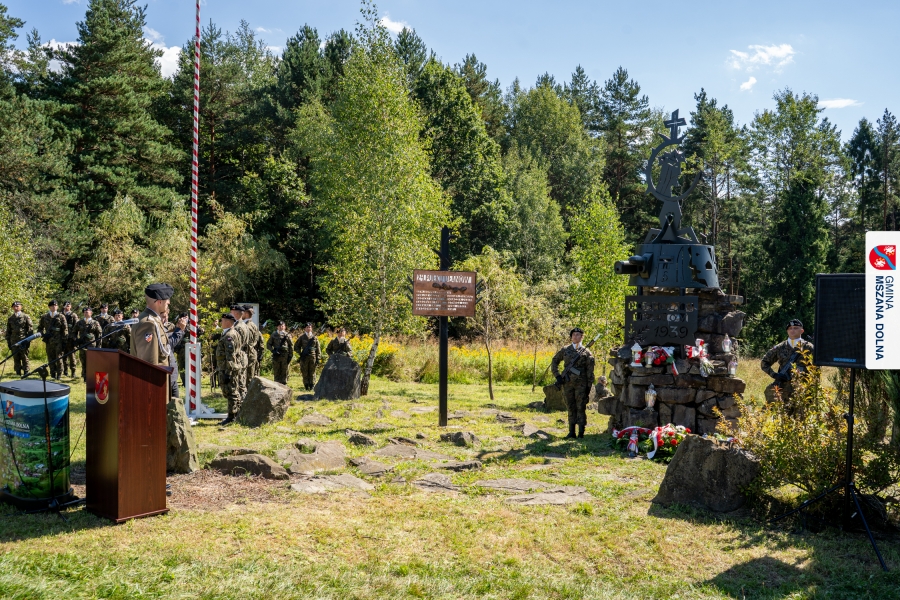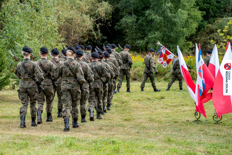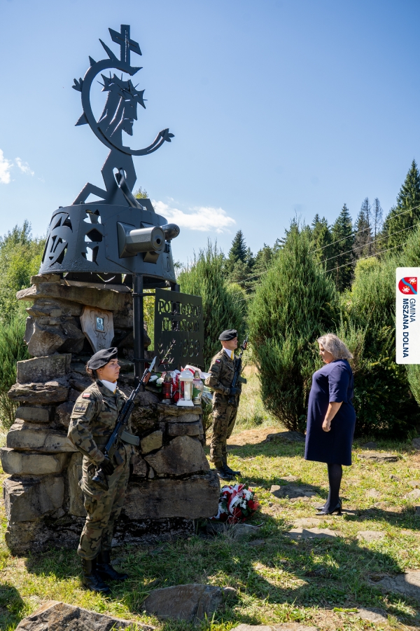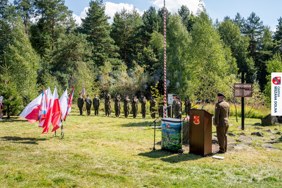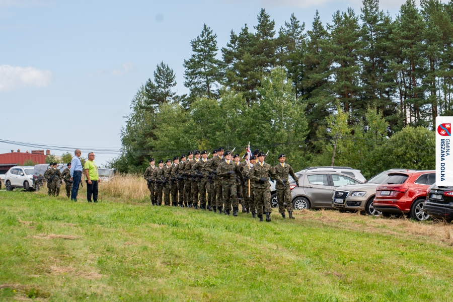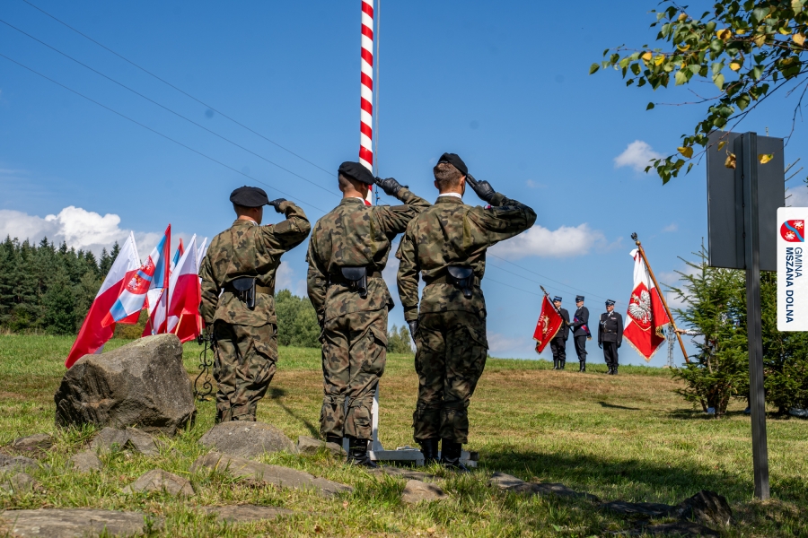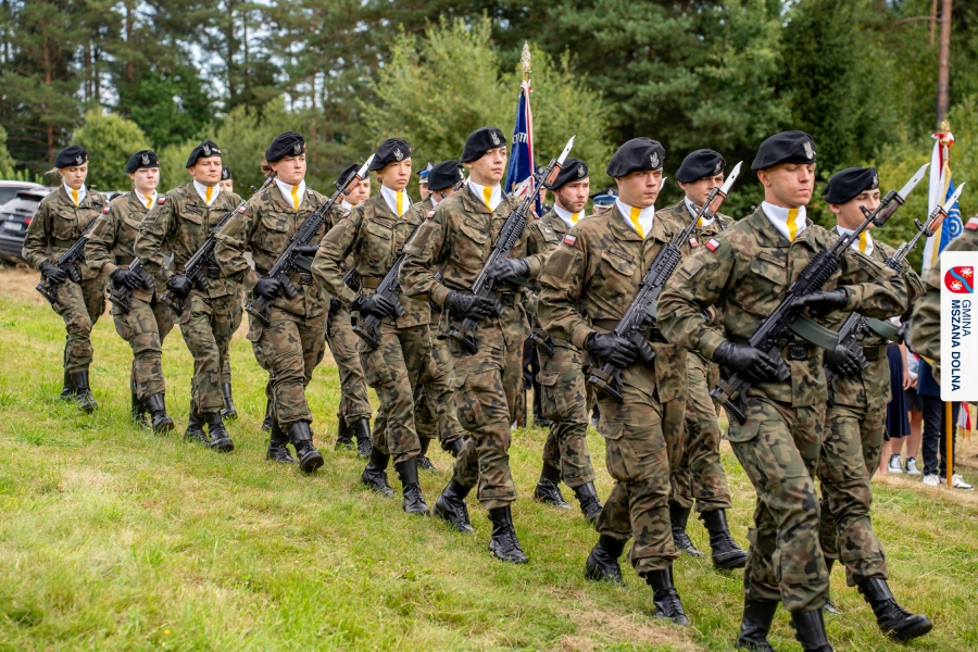 Po Mszy Świętej uczestnicy udali się pod pomnik, gdzie odbyła się główna część uroczystości z udziałem Wojskowej Asysty Honorowej z 10. Brygady Kawalerii Pancernej im. gen. broni Stanisława Maczka ze Świętoszowa. Kompania honorowa, dowodzona przez porucznika Michała Bukowskiego, zaprezentowała uroczysty przemarsz przy dźwiękach „Marszu ułańskiego szyku”, a następnie uczestniczyła w ceremonii podniesienia flagi państwowej.