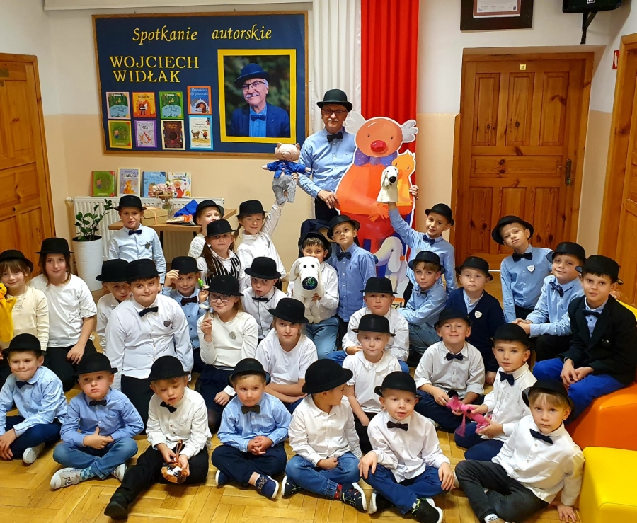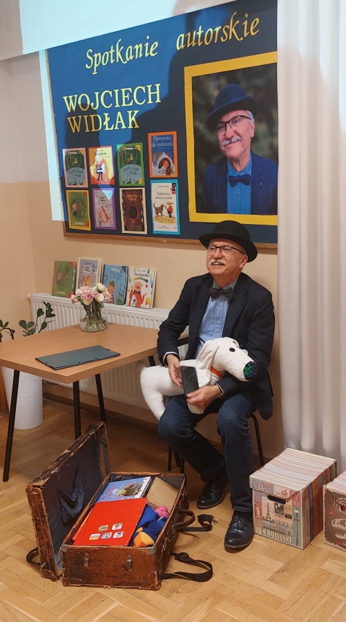Pan Widłak opowiedział o początkach swojej pracy pisarskiej, historii Pana Kuleczki i wraz z ochotnikami ze szkoły przeczytał kilka swoich opowiadań. Nie szczędził również czasu na indywidualne rozmowy z dziećmi, zachęcając je do czytania oraz dobrego i godnego życia. Na koniec przy specjalnie przygotowanym stoliku wpisywał dedykacje do książek zakupionych przez uczniów z okazji tej wizyty, ci zaś ofiarowali mu rysunki, które własnoręcznie wykonali na warsztatach.