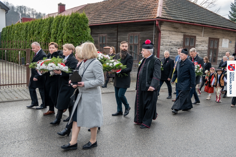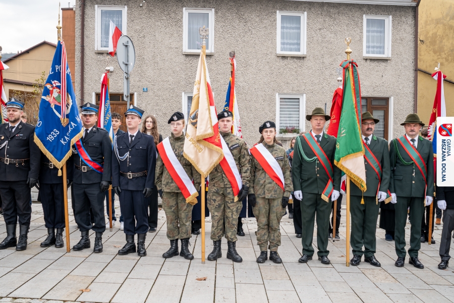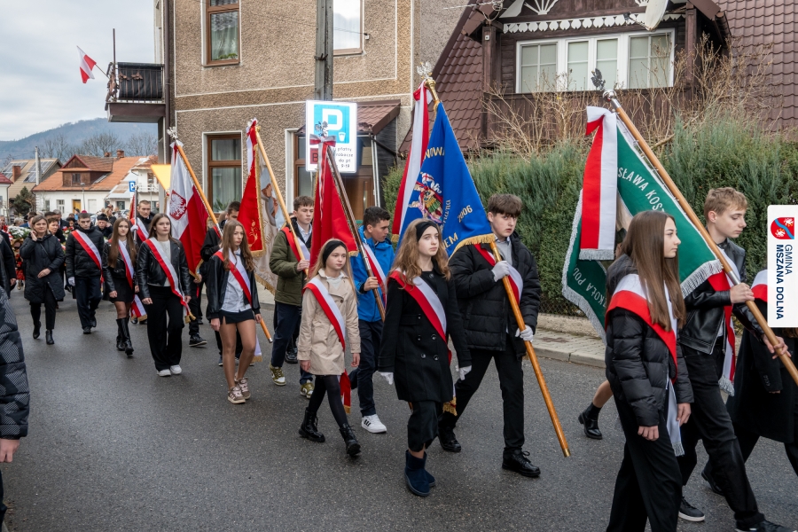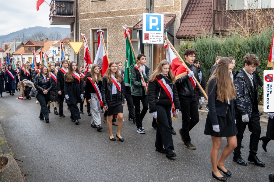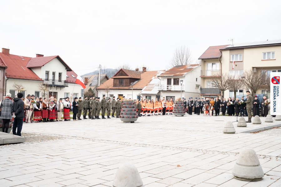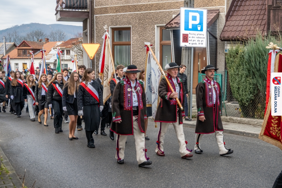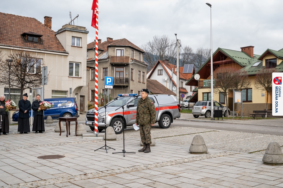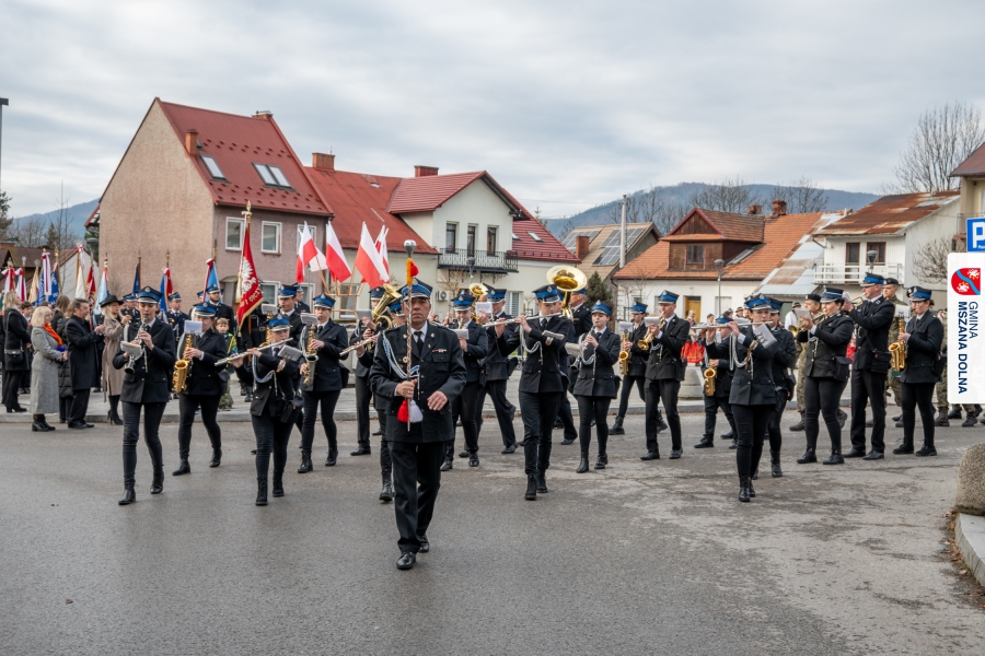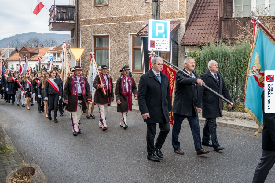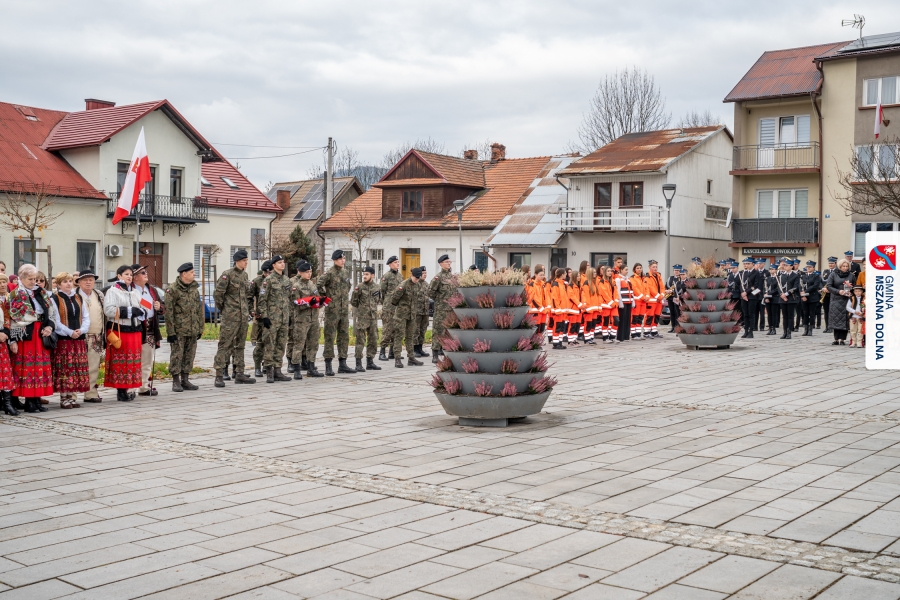 Po ceremonii miało miejsce podniesienie flagi państwowej na maszt, a Orkiestra Dęta Ochotniczej Straży Pożarnej z Mszany Dolnej wykonała hymn narodowy – „Mazurek Dąbrowskiego”. Głos zabrali Burmistrz Miasta Mszana Dolna pani Agnieszka Orzeł oraz Wójt Gminy Mszana Dolna pan Mirosław Cichorz, którzy powitali zgromadzonych gości, wyrazili wdzięczność za liczną obecność młodzieży oraz pocztów sztandarowych, a także podkreślili znaczenie pielęgnowania pamięci historycznej przez młode pokolenia.