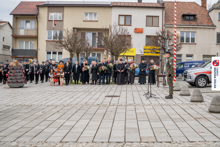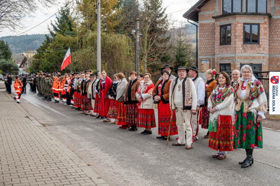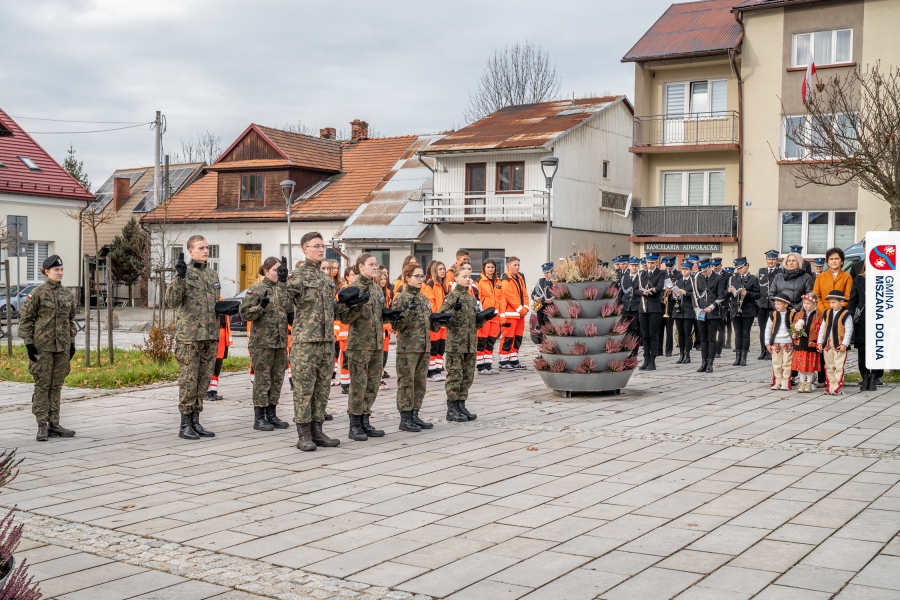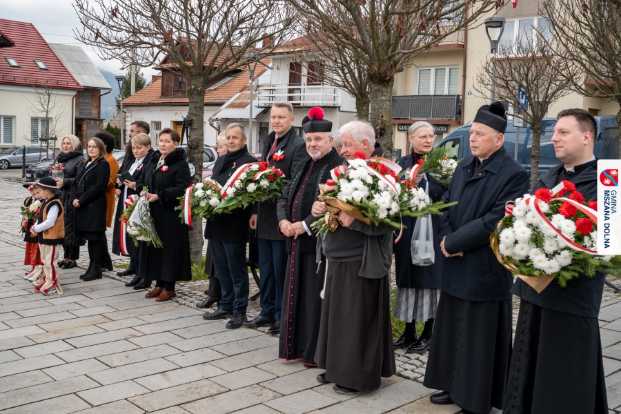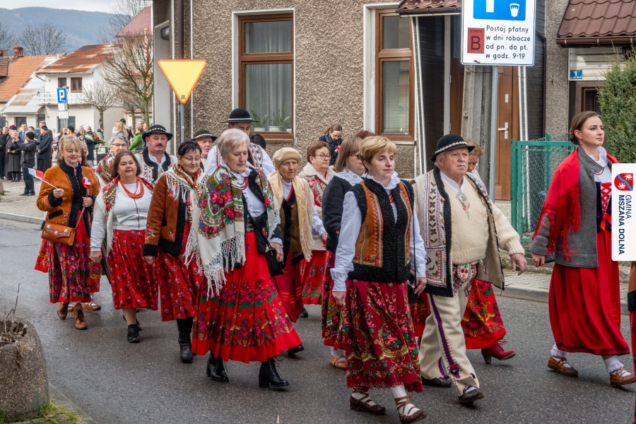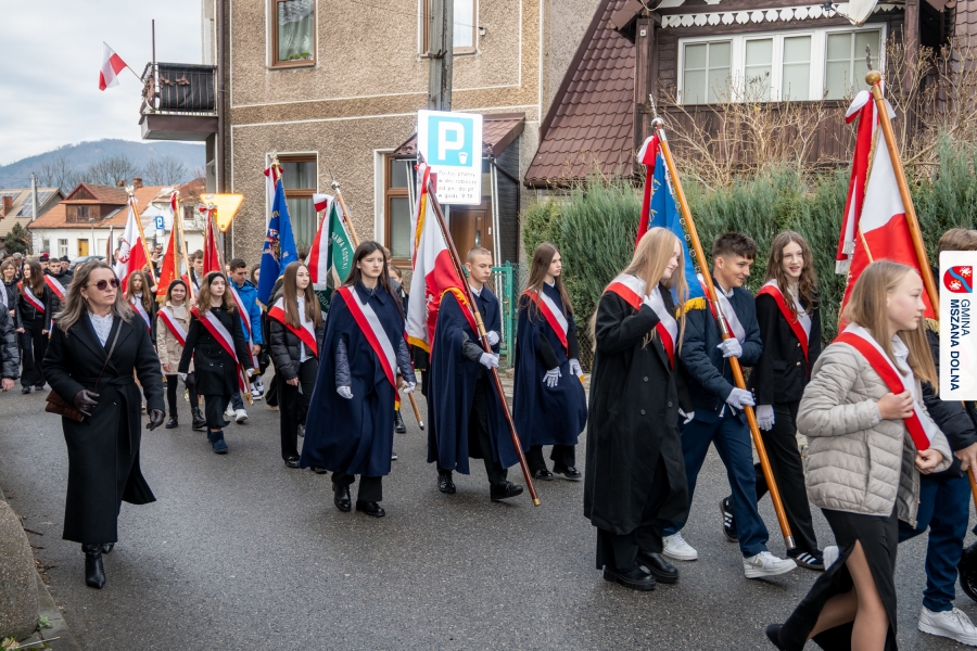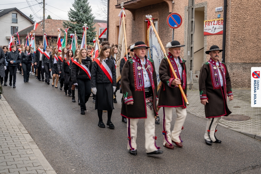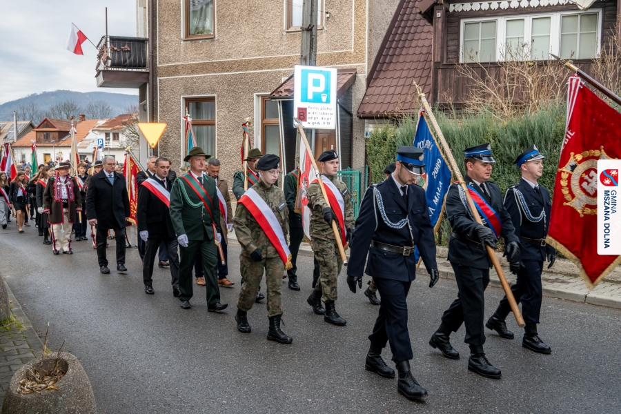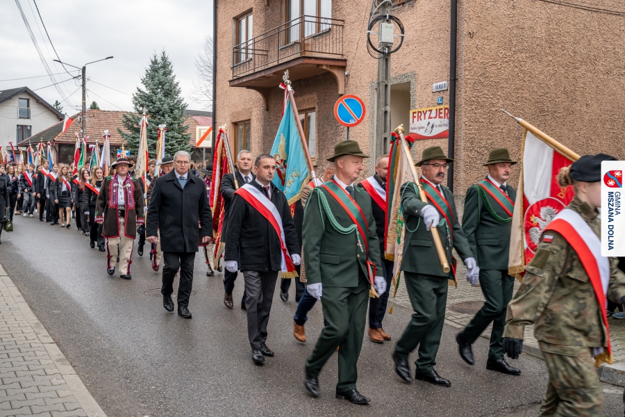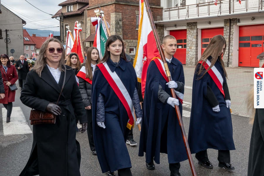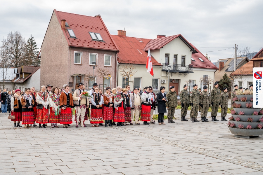 Po ceremonii miało miejsce podniesienie flagi państwowej na maszt, a Orkiestra Dęta Ochotniczej Straży Pożarnej z Mszany Dolnej wykonała hymn narodowy – „Mazurek Dąbrowskiego”. Głos zabrali Burmistrz Miasta Mszana Dolna pani Agnieszka Orzeł oraz Wójt Gminy Mszana Dolna pan Mirosław Cichorz, którzy powitali zgromadzonych gości, wyrazili wdzięczność za liczną obecność młodzieży oraz pocztów sztandarowych, a także podkreślili znaczenie pielęgnowania pamięci historycznej przez młode pokolenia.