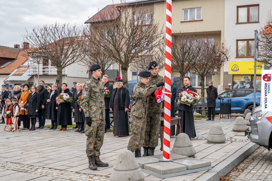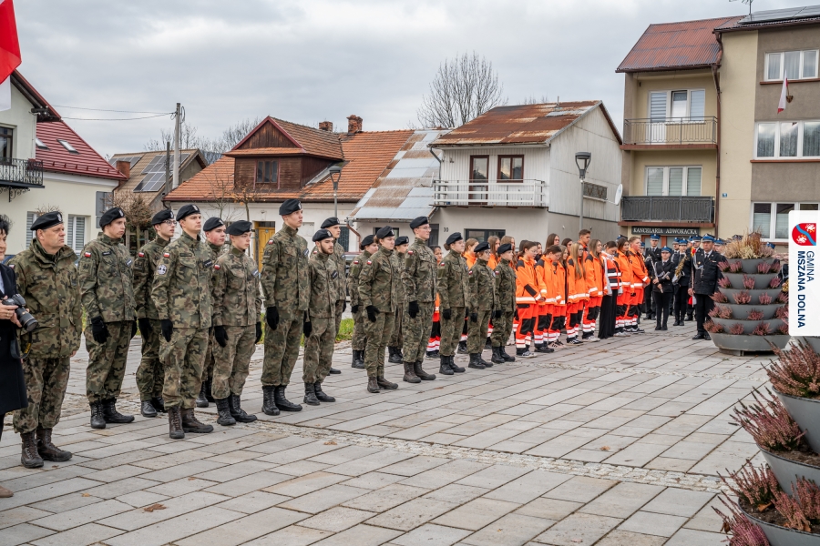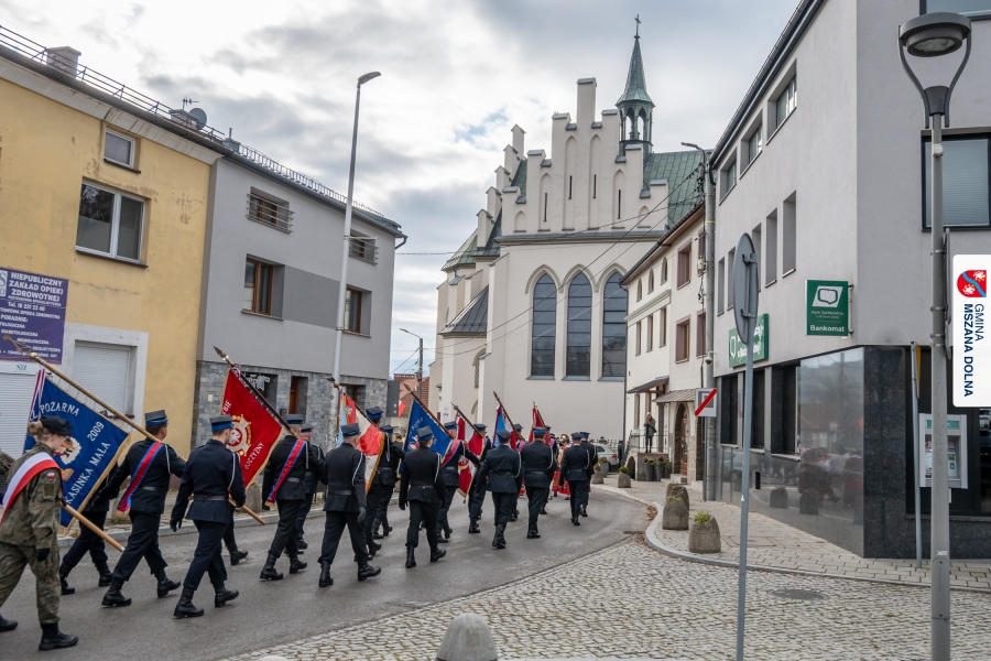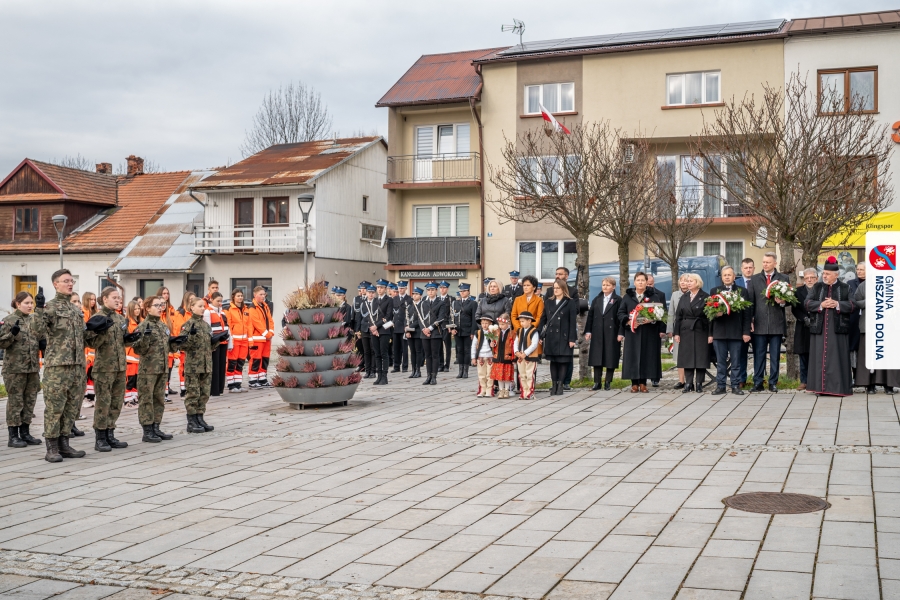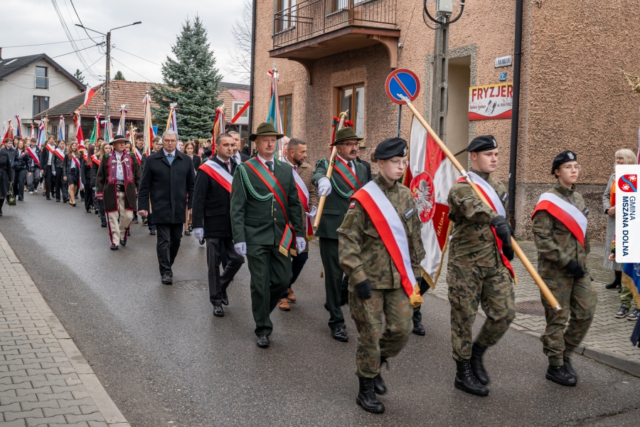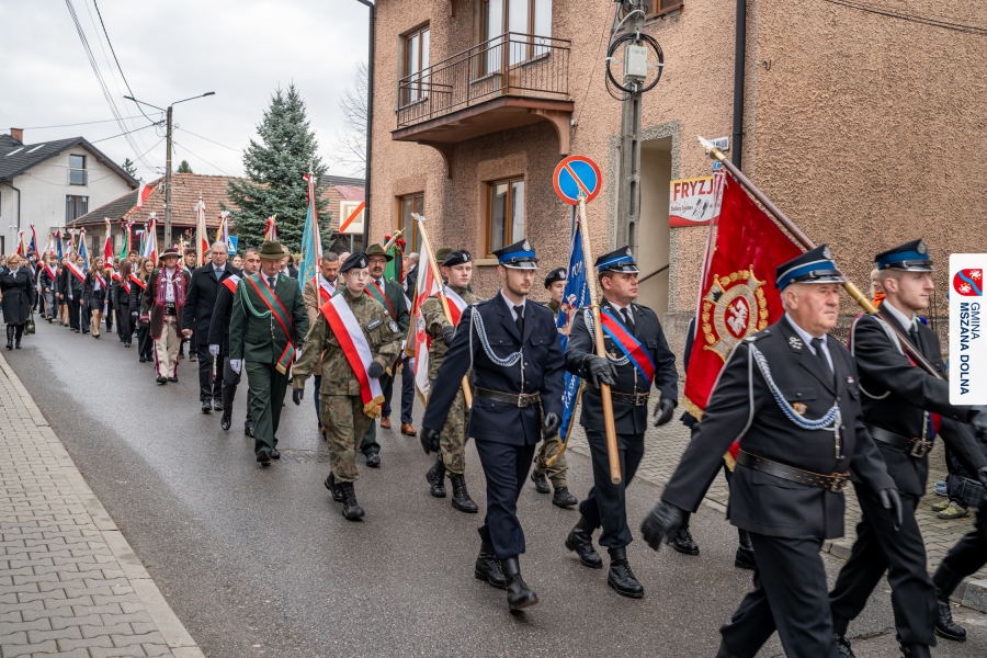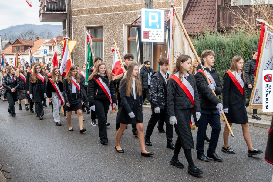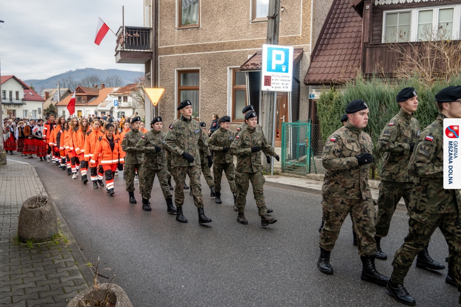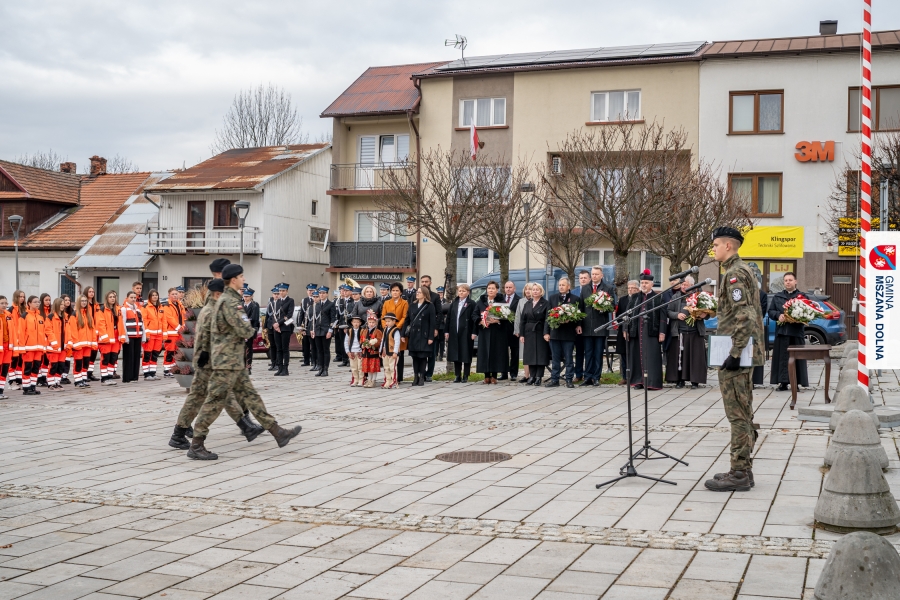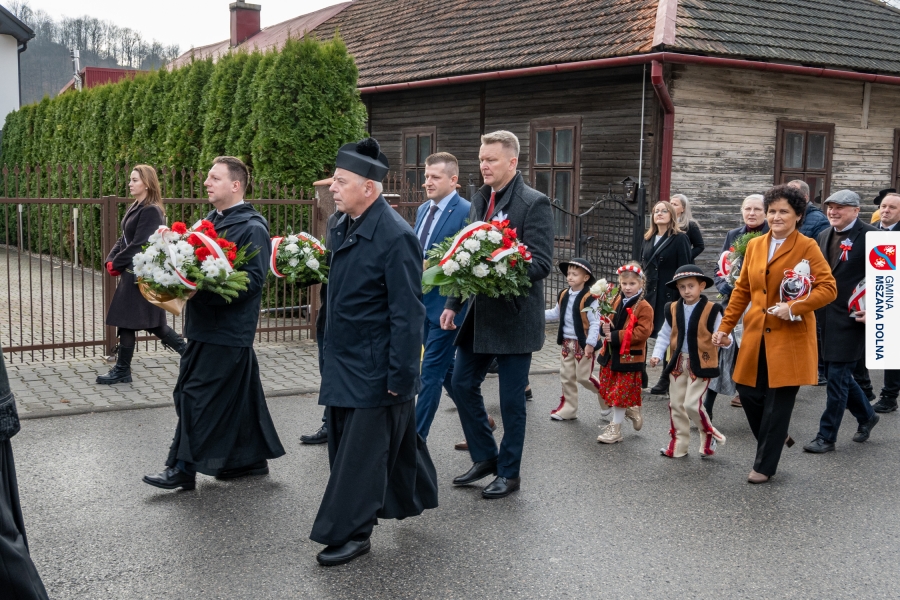 Po ceremonii miało miejsce podniesienie flagi państwowej na maszt, a Orkiestra Dęta Ochotniczej Straży Pożarnej z Mszany Dolnej wykonała hymn narodowy – „Mazurek Dąbrowskiego”. Głos zabrali Burmistrz Miasta Mszana Dolna pani Agnieszka Orzeł oraz Wójt Gminy Mszana Dolna pan Mirosław Cichorz, którzy powitali zgromadzonych gości, wyrazili wdzięczność za liczną obecność młodzieży oraz pocztów sztandarowych, a także podkreślili znaczenie pielęgnowania pamięci historycznej przez młode pokolenia.