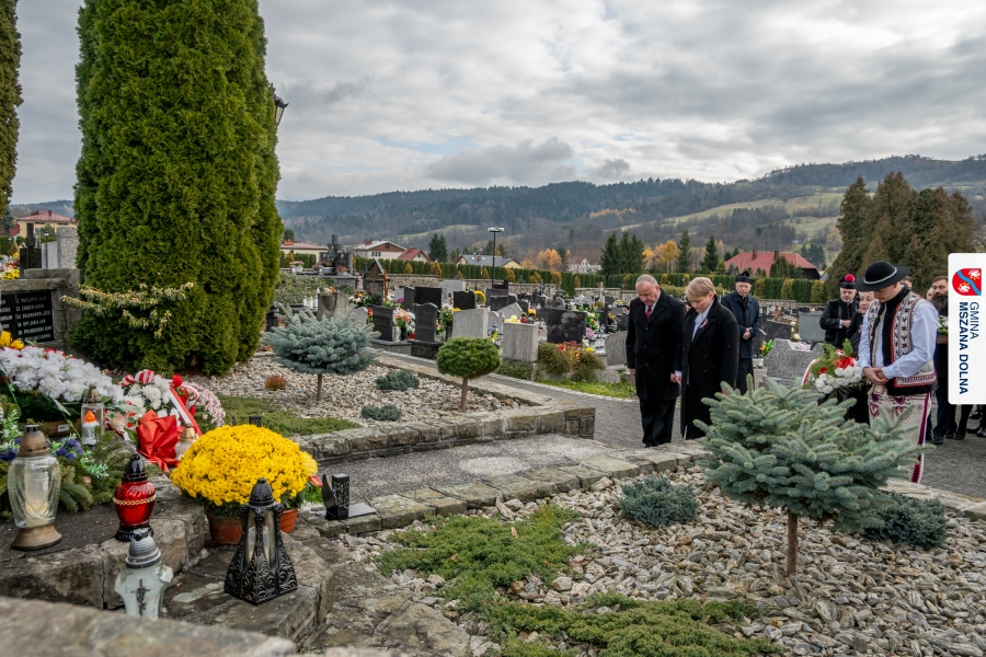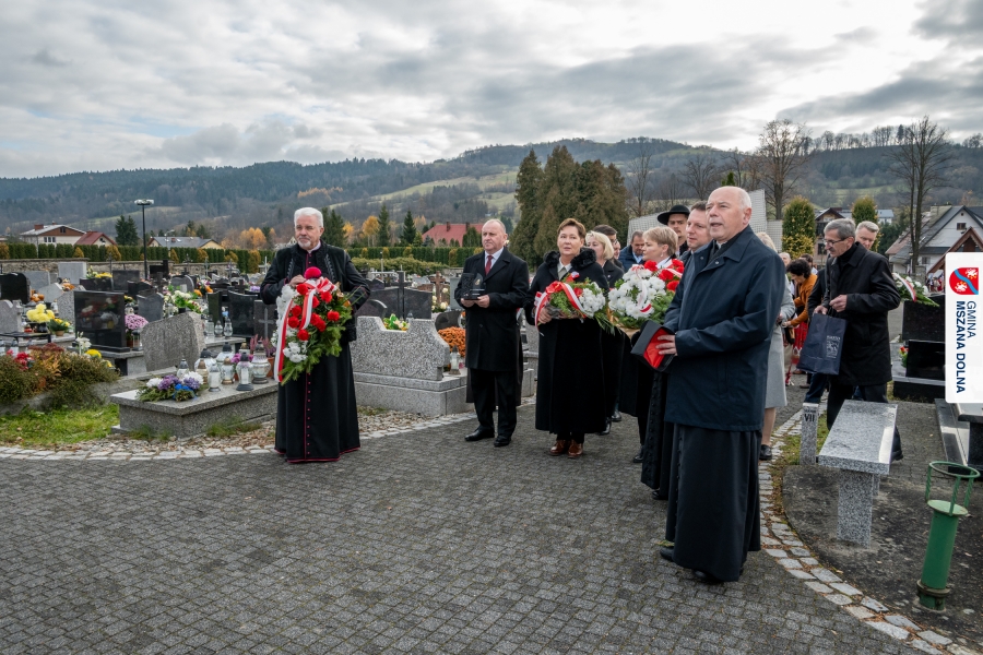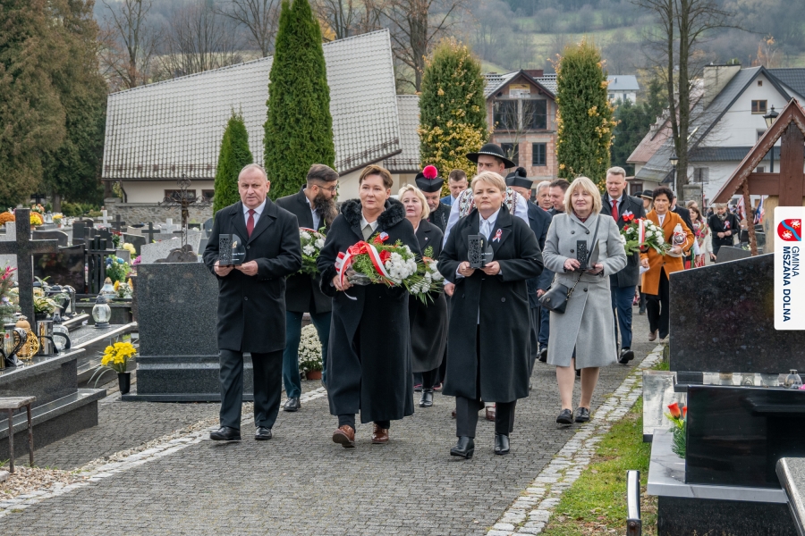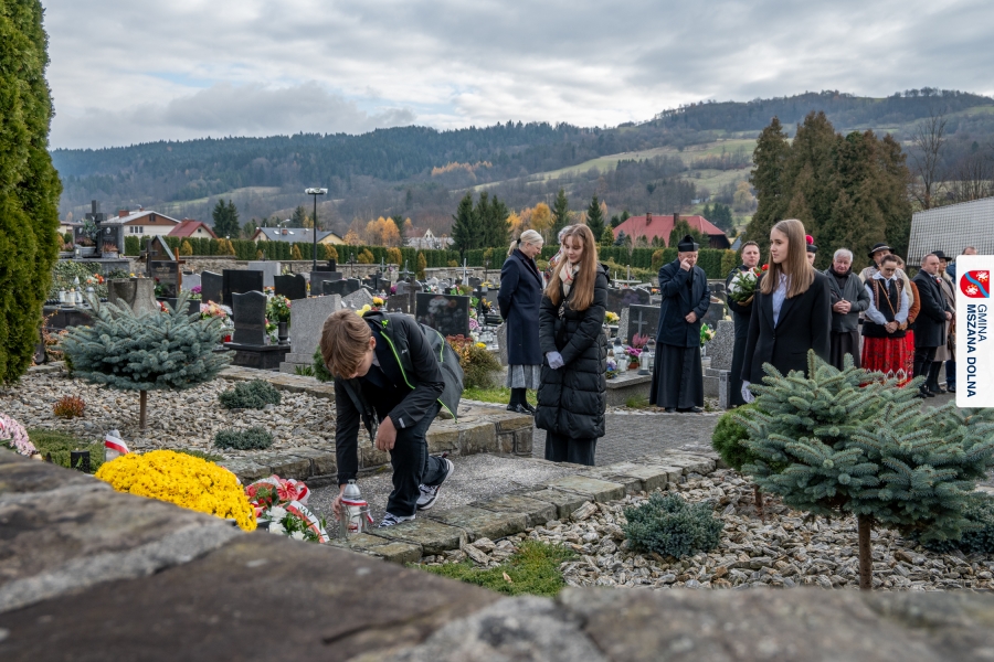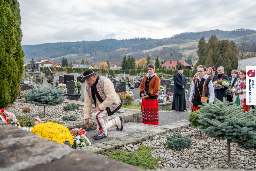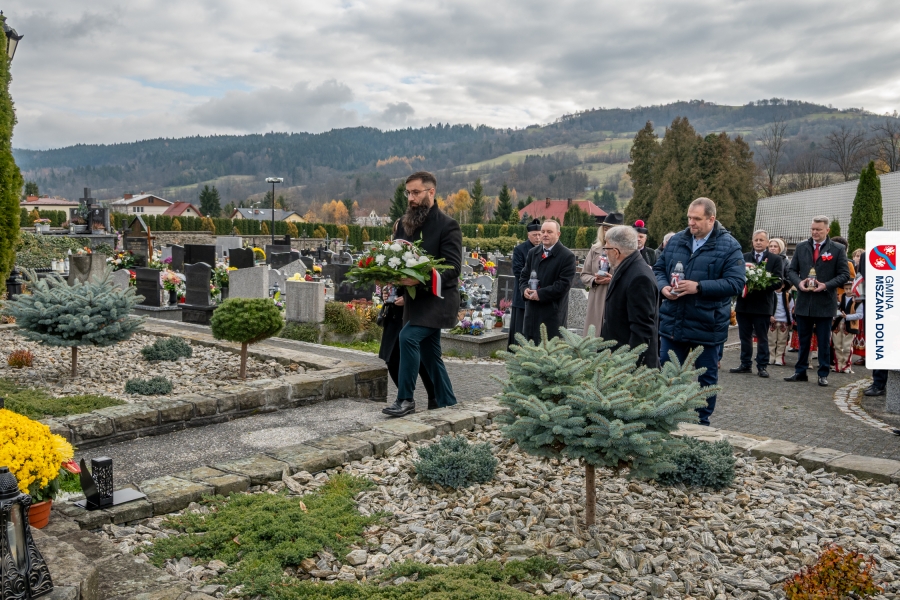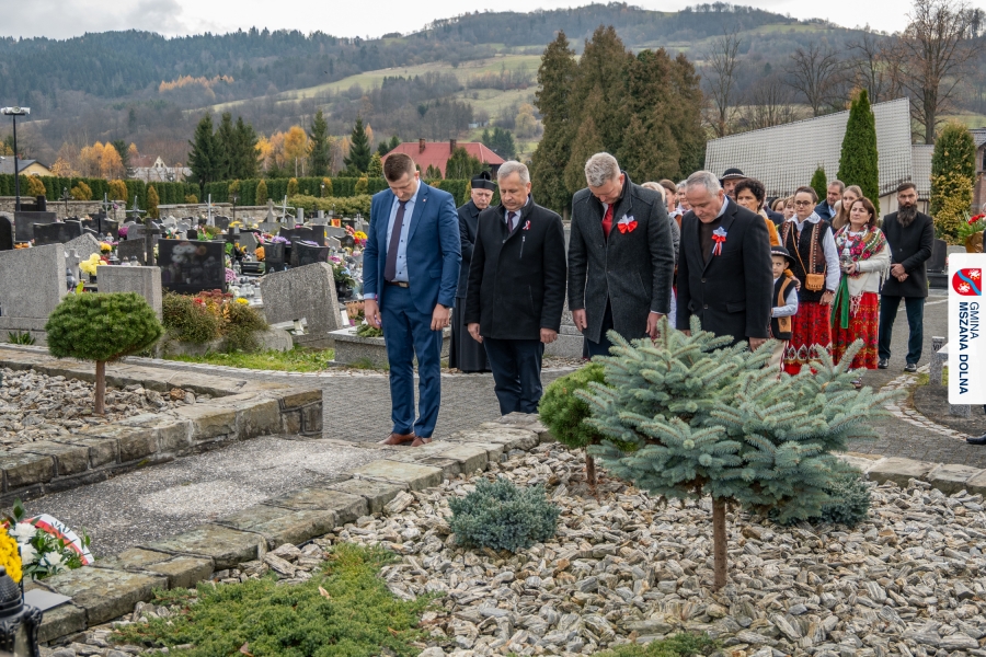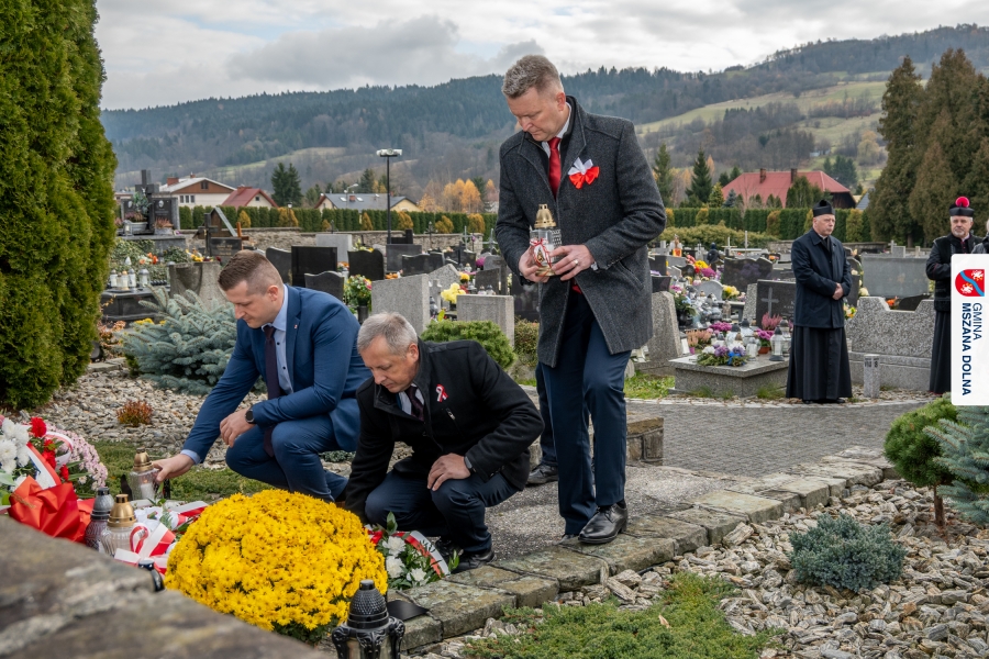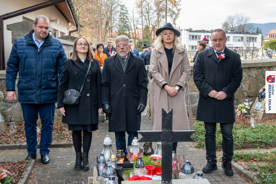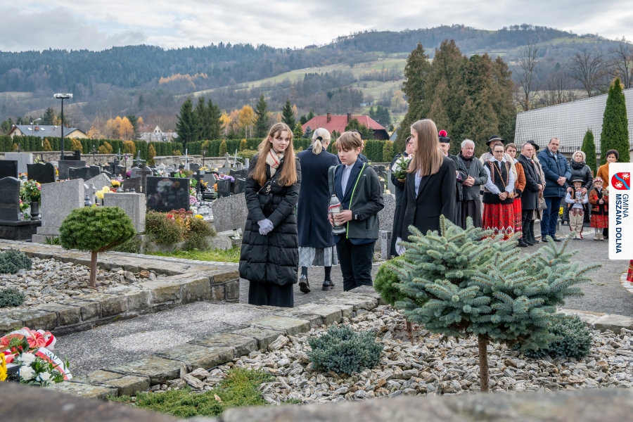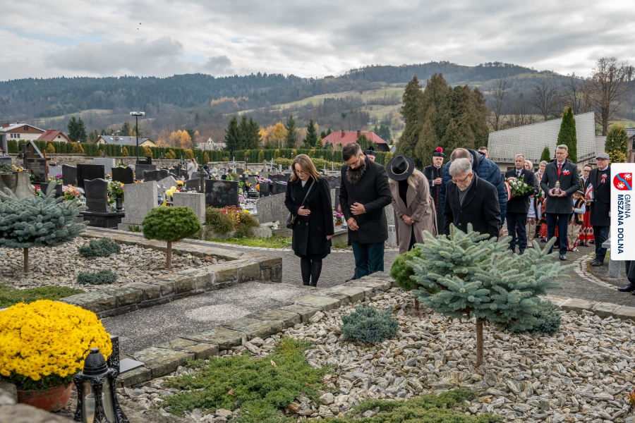 Po zakończeniu części oficjalnej uczestnicy przemaszerowali na cmentarz parafialny, gdzie delegacje lokalnych instytucji, szkół, organizacji oraz przedstawiciele samorządu – radni powiatowi, radni gminy Mszana Dolna i radni miasta Mszana Dolna – złożyli wieńce i zapalili znicze przy mogiłach poległych żołnierzy, oddając hołd bohaterom walki o niepodległość.