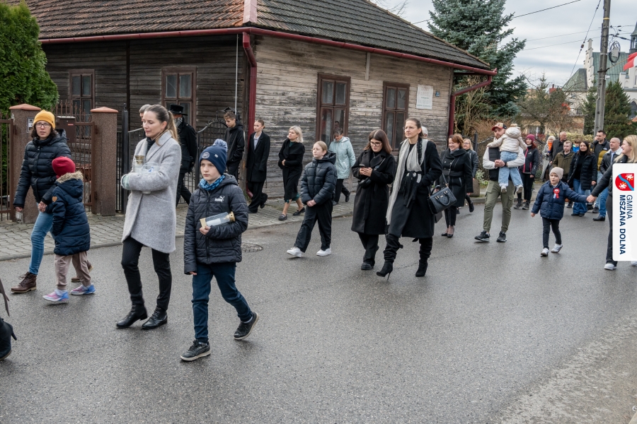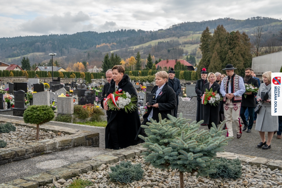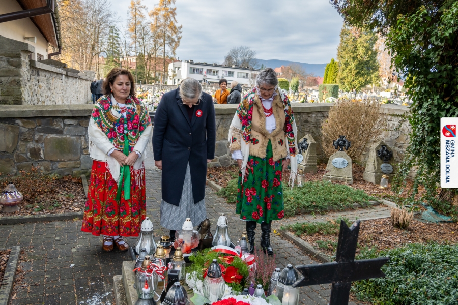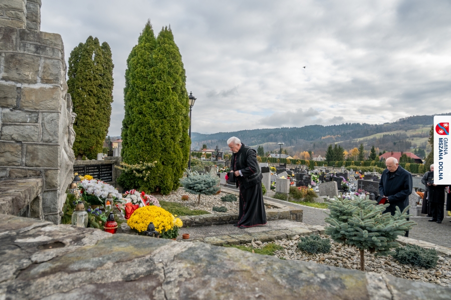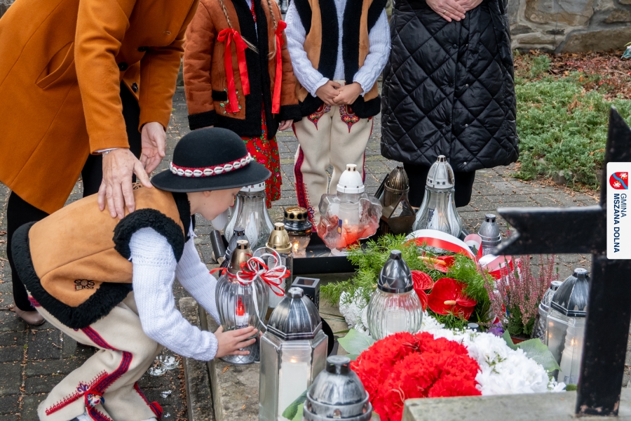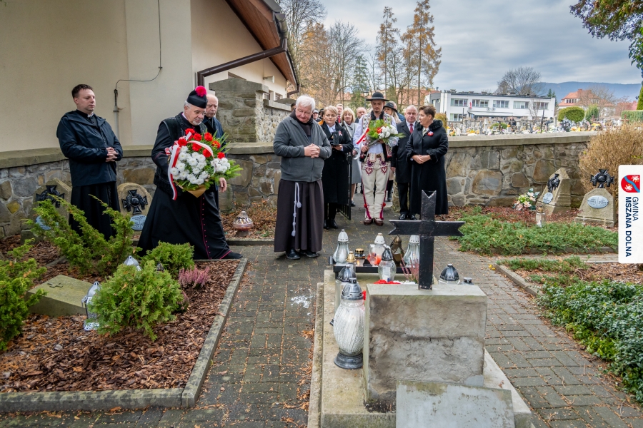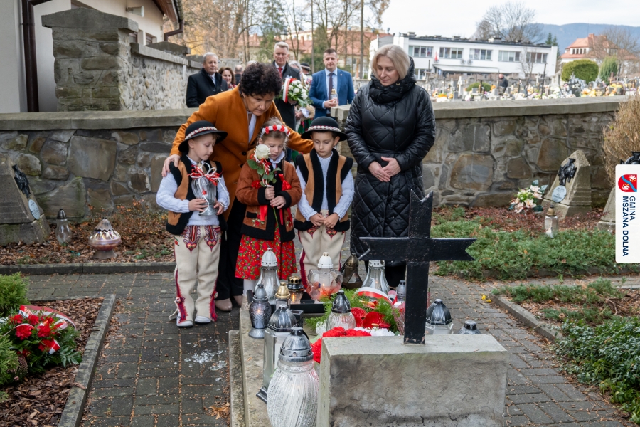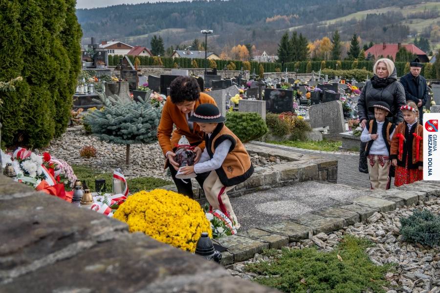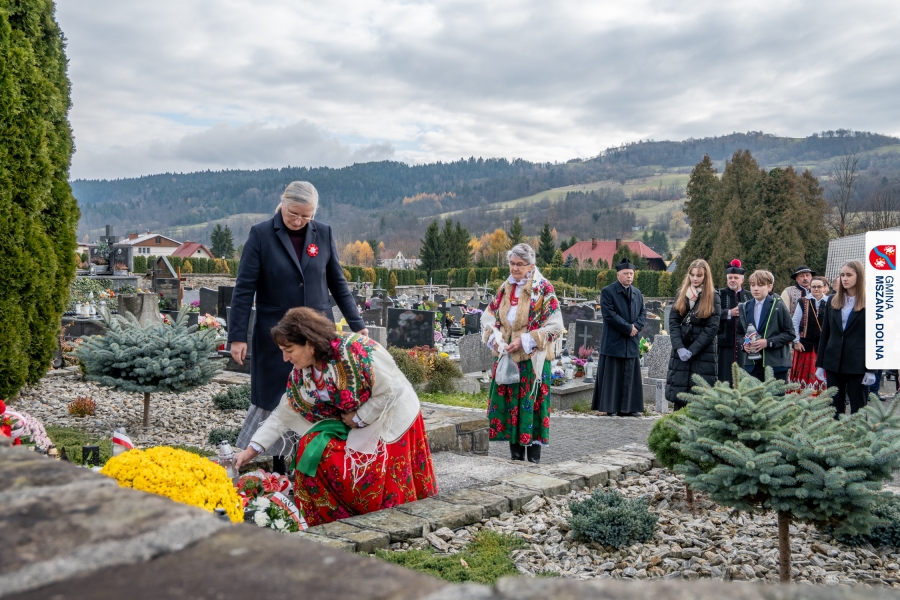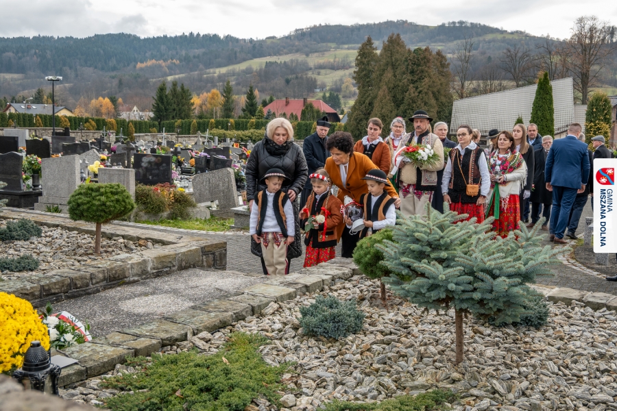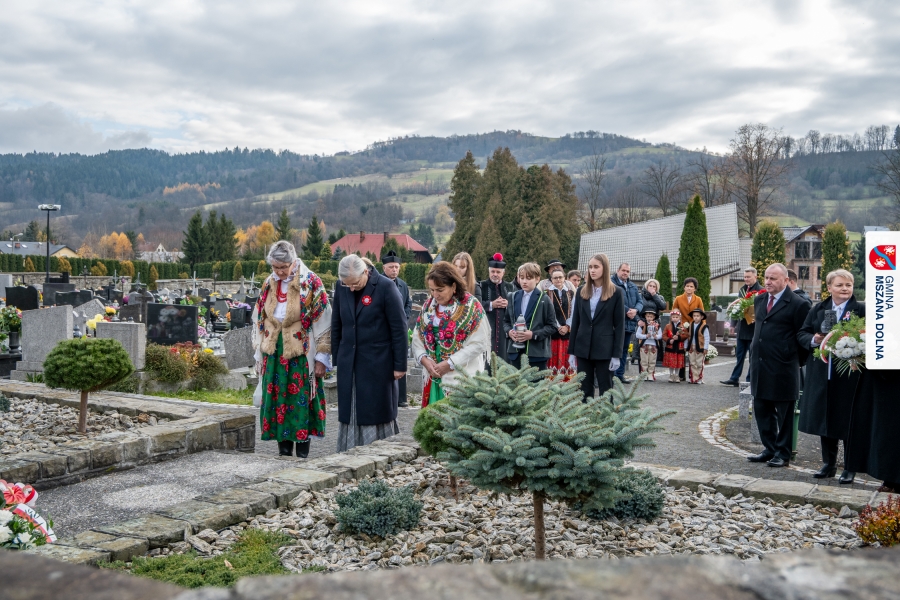 Po zakończeniu części oficjalnej uczestnicy przemaszerowali na cmentarz parafialny, gdzie delegacje lokalnych instytucji, szkół, organizacji oraz przedstawiciele samorządu – radni powiatowi, radni gminy Mszana Dolna i radni miasta Mszana Dolna – złożyli wieńce i zapalili znicze przy mogiłach poległych żołnierzy, oddając hołd bohaterom walki o niepodległość.