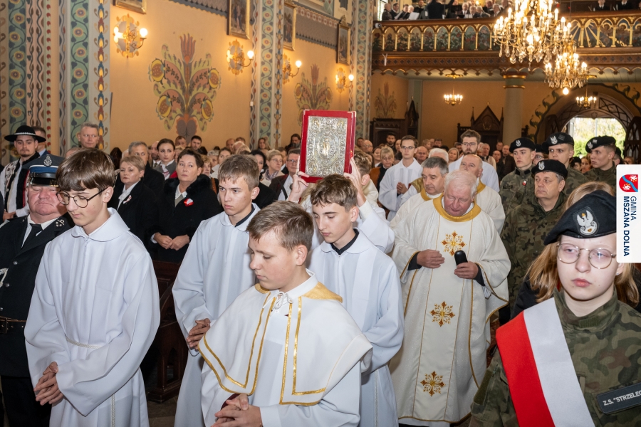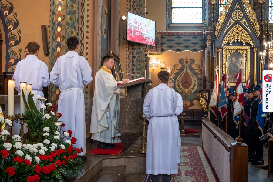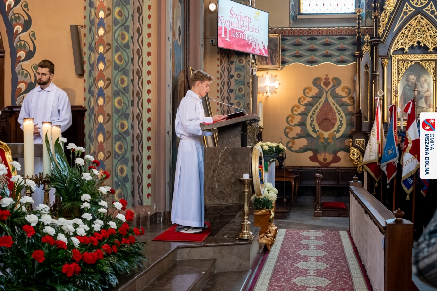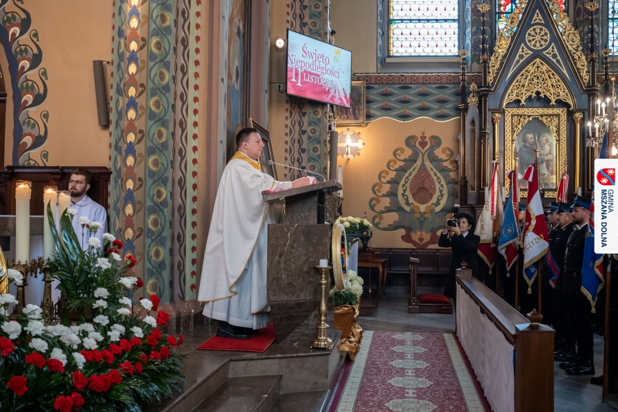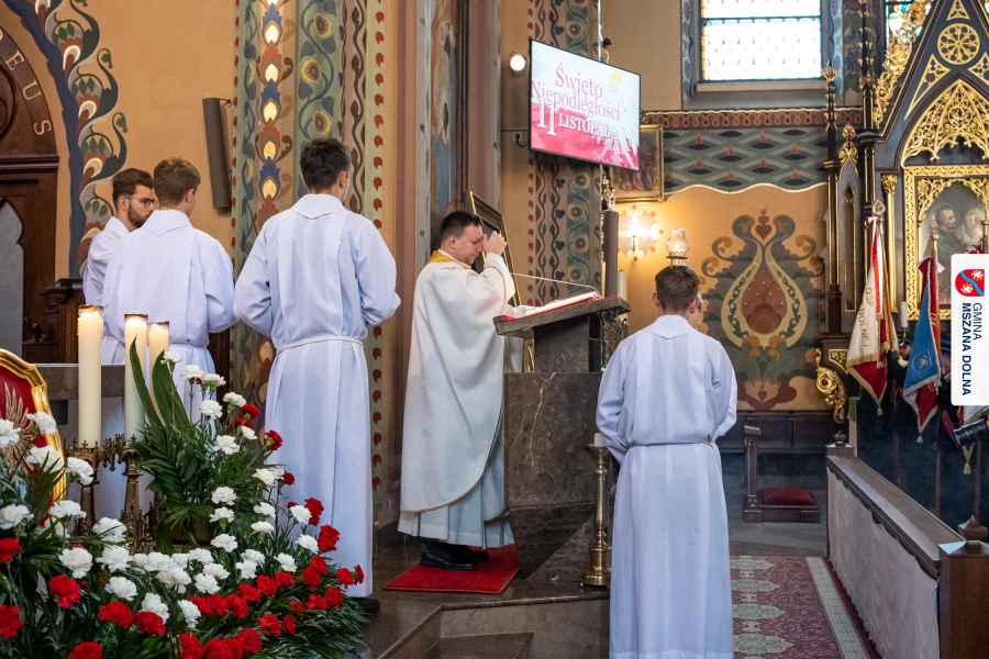 Uroczystej mszy świętej w Sanktuarium pw. Św. Michała Archanioła przewodniczył ks. kustosz Jan Antoł, w koncelebrze z ks. dr Tadeuszem Mrowcem, ks. Jerzym Raźnym, ks. Marcinem Chołodniukiem, o. Markiem Kustroniem oraz o. Ginterem Hulinem. Homilię wygłosił ks. Marcin Chołodniuk, który przypomniał o znaczeniu patriotyzmu, konieczności pamięci o bohaterach narodowych oraz odpowiedzialności współczesnych pokoleń za zachowanie niepodległości.