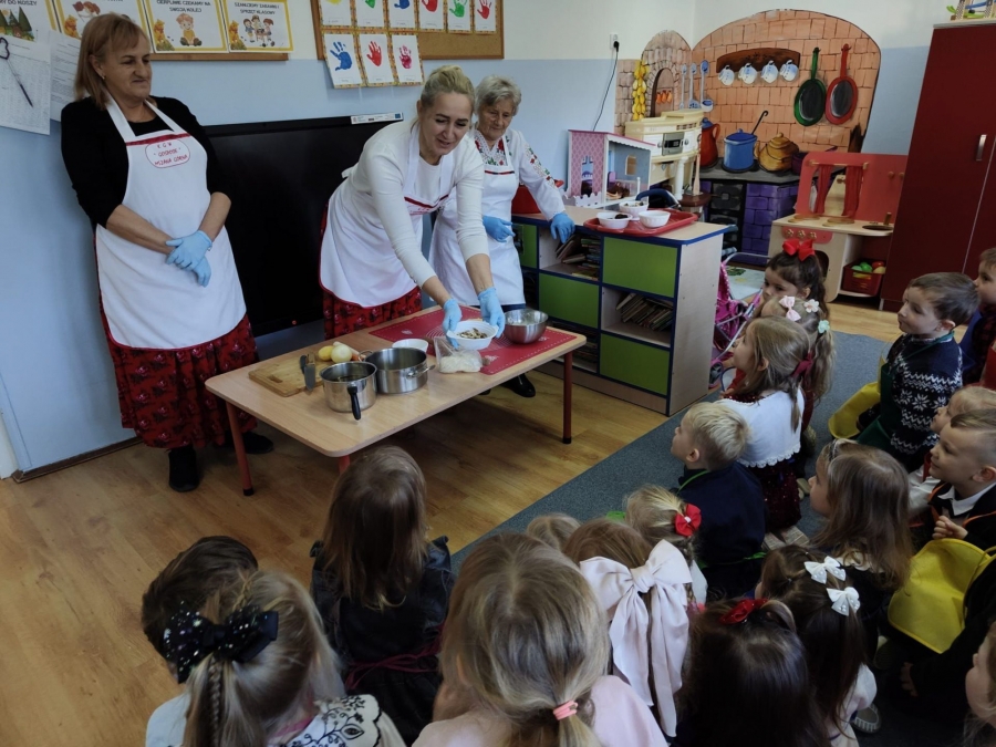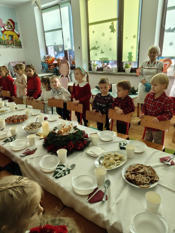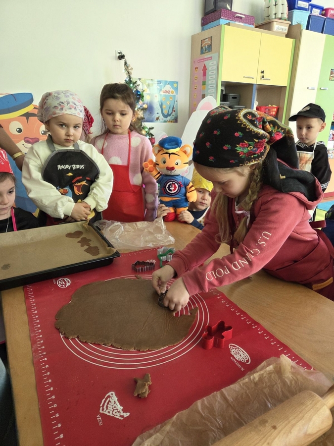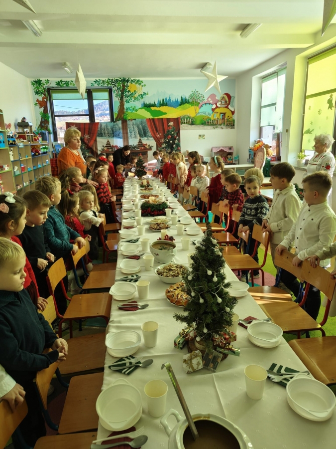 W grudniu przedszkole wypełniła świąteczna atmosfera dzięki wydarzeniu „Święta Bożego Narodzenia w Polsce i nie tylko – Christmas”. Dzieci poznawały bożonarodzeniowe tradycje z różnych krajów, uczyły się świątecznych słówek i piosenek w języku angielskim, wykonywały ozdoby oraz kartki świąteczne. We współpracy z Kołem Gospodyń Wiejskich Gosposie w Mszanie Górnej odbyły się także warsztaty kulinarne, podczas których przedszkolaki piekły pierniki. Zwieńczeniem była uroczysta przedszkolna Wigilia pełna kolęd, serdecznych życzeń, regionalnych potraw i wspólnego świętowania.