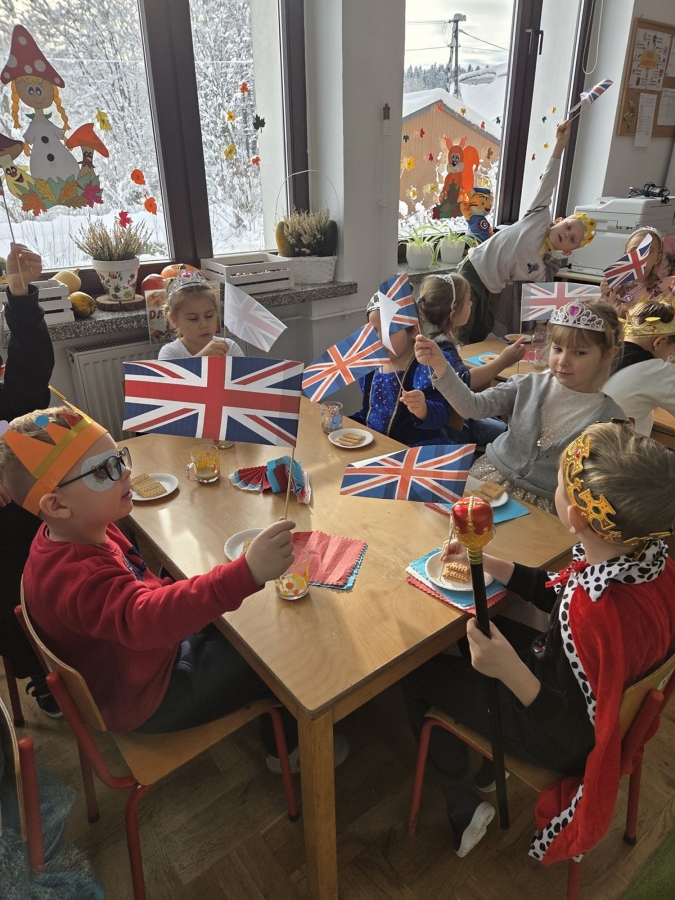 Jednym z wyjątkowych wydarzeń był „Dzień Brytyjski – British Day”, podczas którego przedszkolaki poznały symbole narodowe Wielkiej Brytanii, jej regiony oraz charakterystyczne miejsca, takie jak Pałac Buckingham, Big Ben czy Tower Bridge. Dzieci uczyły się podstawowych zwrotów w języku angielskim, śpiewały piosenki oraz uczestniczyły w zabawach sensorycznych. Dużym zainteresowaniem cieszyła się także tradycyjna ceremonia picia herbaty, a królewskiego klimatu dodały stroje małych „angielskich dżentelmenów”.