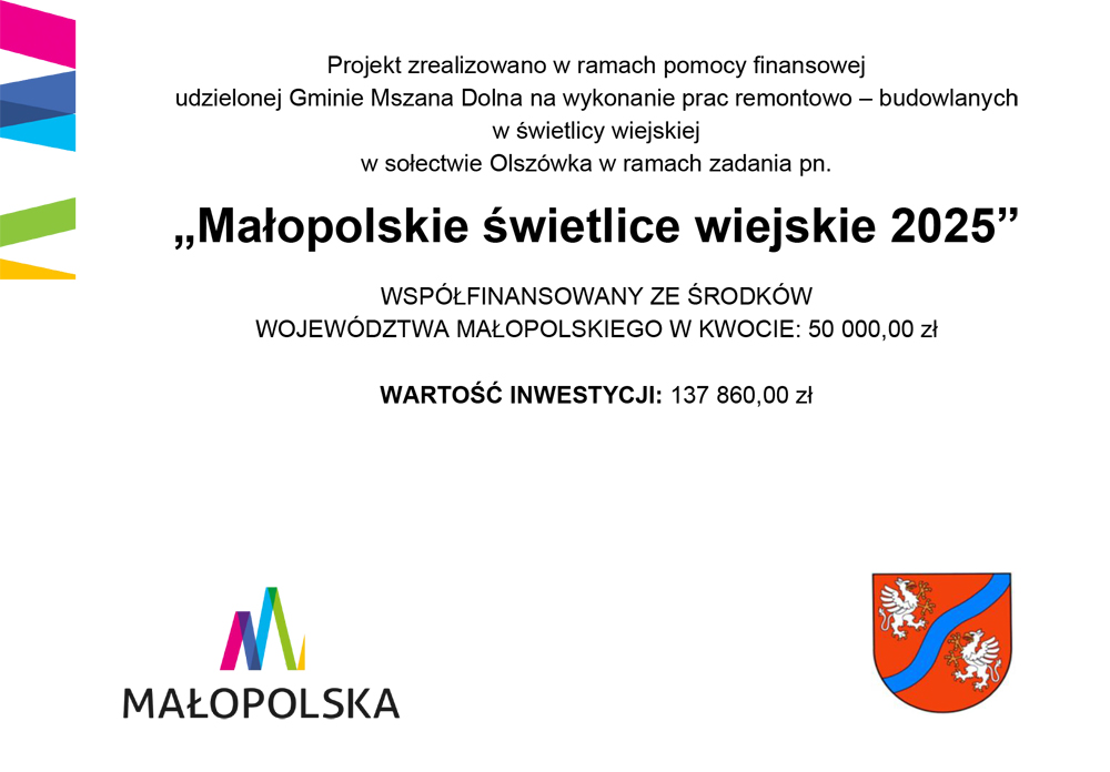 To wszystko jest już jednak przeszłością – dziś mieszkańcy Olszówki mogą korzystać z wyremontowanej, funkcjonalnej i bezpiecznej świetlicy, która zyskała nowoczesnego charakteru.
