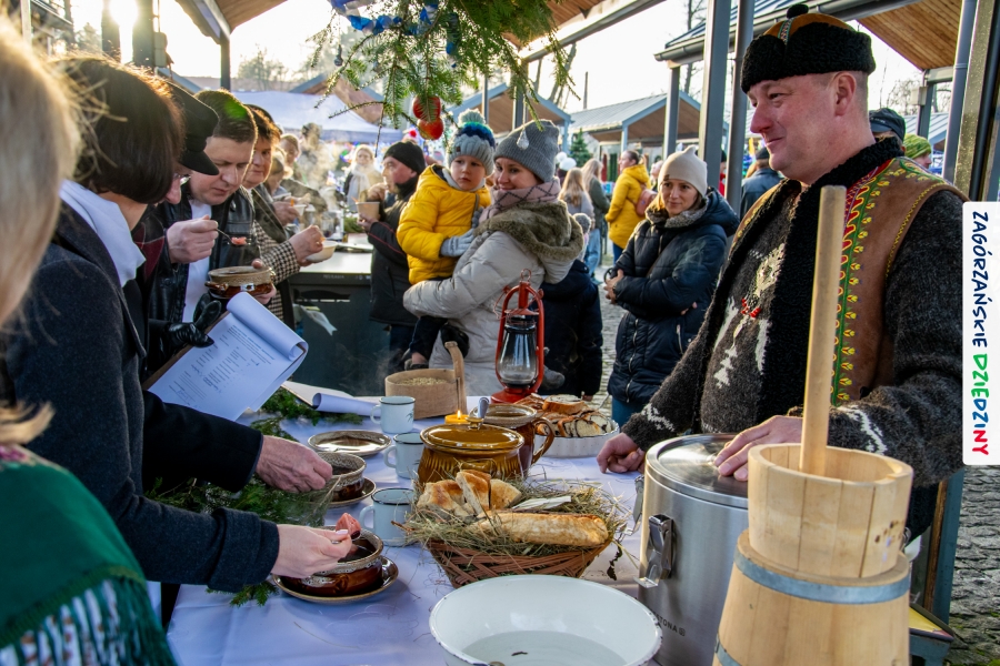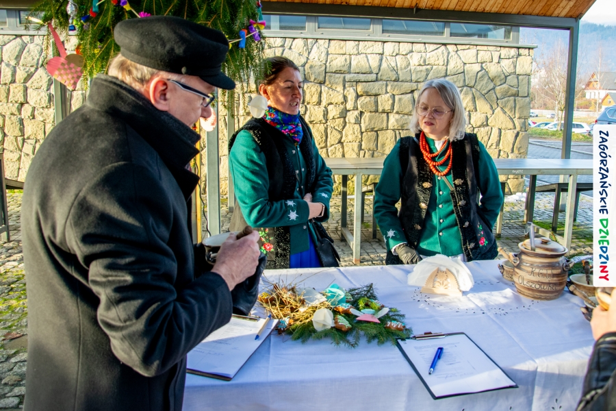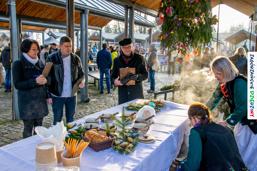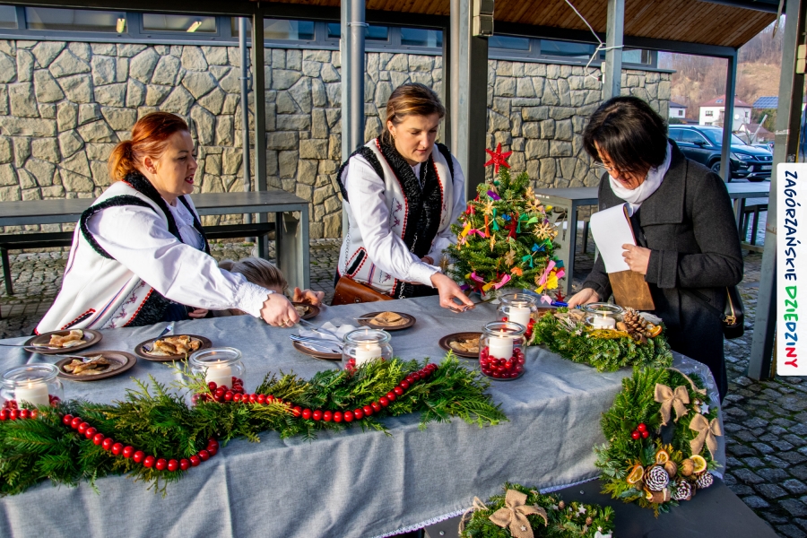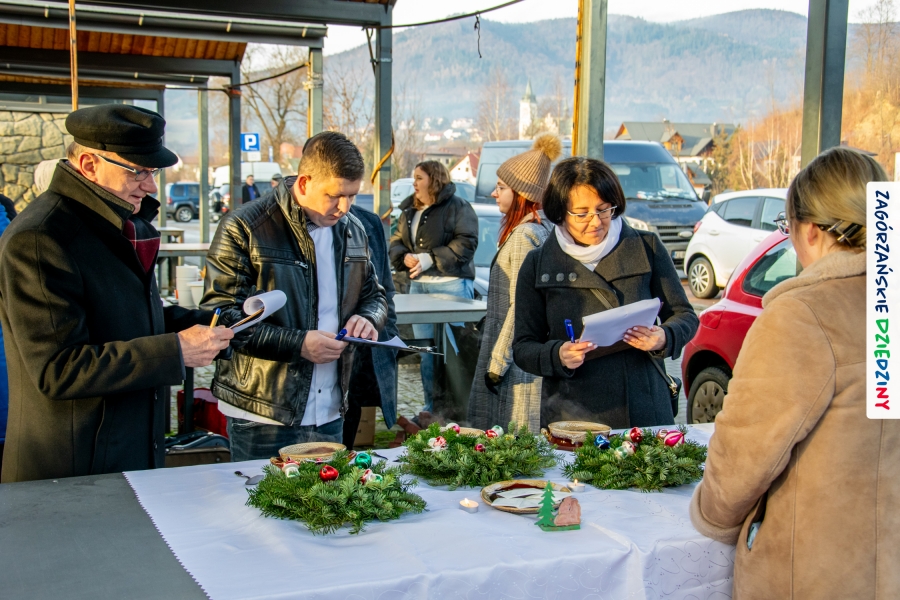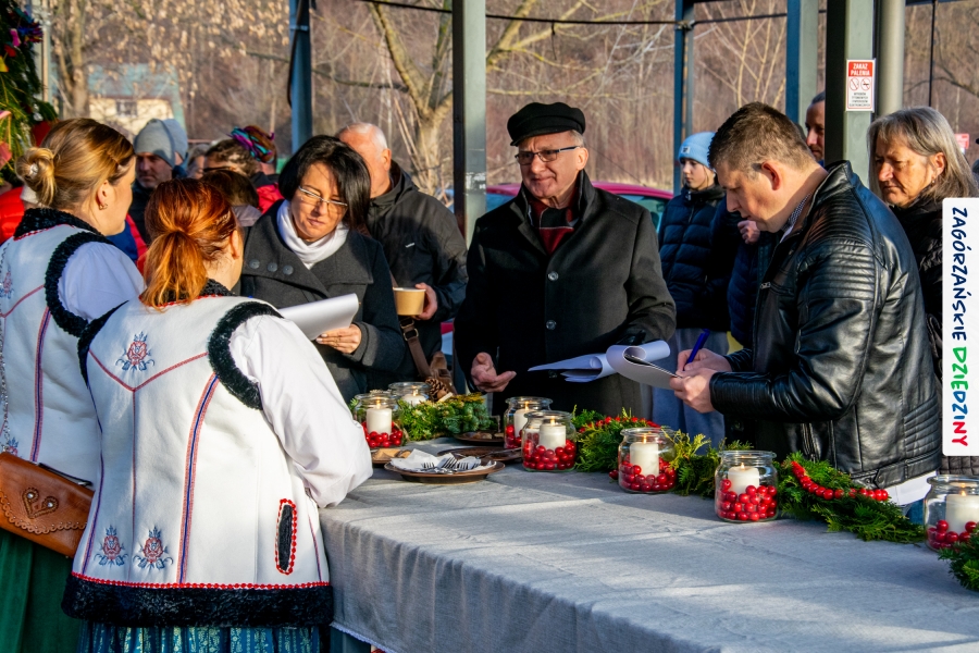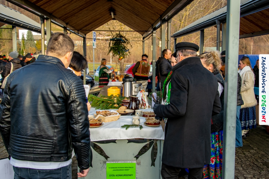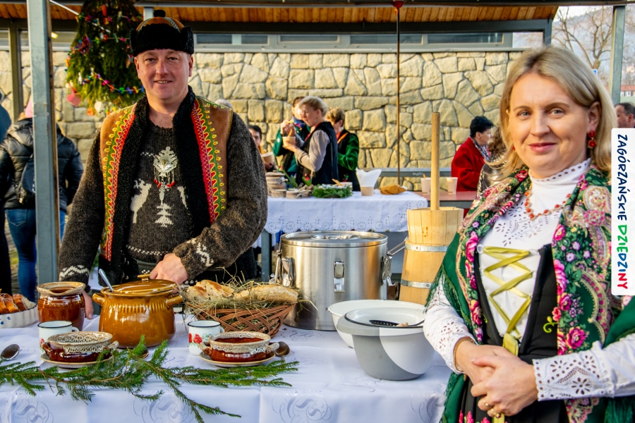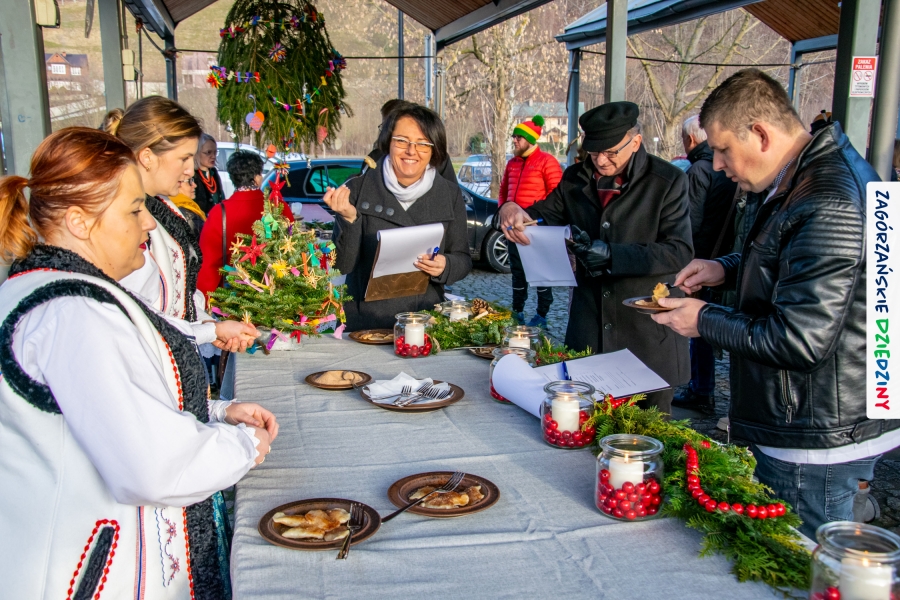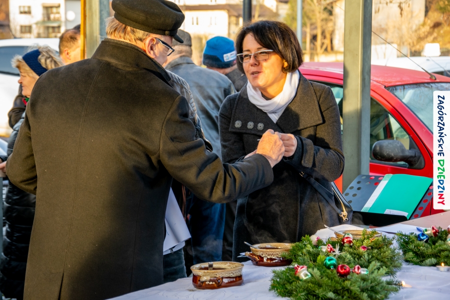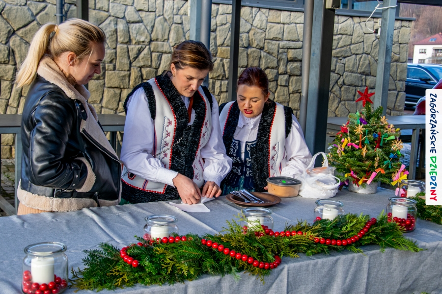 Należy się do tego dnia dorzucić garść podziękowań. Tak więc dziękujemy Stowarzyszeniu Miłośników Kultury Góralskiej „Pod Cyrlom” za trud organizacji IV Konkursu Potraw Wigilijnych „Zagórzańskie Smaki”. Dziękujemy za stałe wsparcie naszej Komisji Konkursowej, w osobach: dr Katarzyna Ceklarz, Paweł Kołodziej i Wojciech Winkel. Dziękujemy Pani Dyrektor Przedszkola Miejskiego nr 2 za możliwość przeprowadzenia warsztatów w starym budynku przedszkola. Dziękujemy KGW Olszówka za poprowadzenie warsztatów z tworzenia tradycyjnych ozdób świątecznych. Dziękujemy za występy: Orkiestrze Dętej OSP w Mszanie Dolnej, Orkiestrze Dętej „Sami Swoi” z Kasinki Małej – Zagródca oraz rodzinnej kapeli „Kościelnioki” z Olszówki. Dziękujemy Piotrowi Woźniakowi z Koniny za dostawę żywego inwentarza, który niezmiennie zachwyca najmłodszych. Kłaniamy się nisko Klaudii Gawronek „za gadkę”, a firmie Dropel za wsparcie i zapewnienie nagłośnienia oraz świątecznego oświetlenia. W końcu dziękujemy naszym tegorocznym wystawcom: