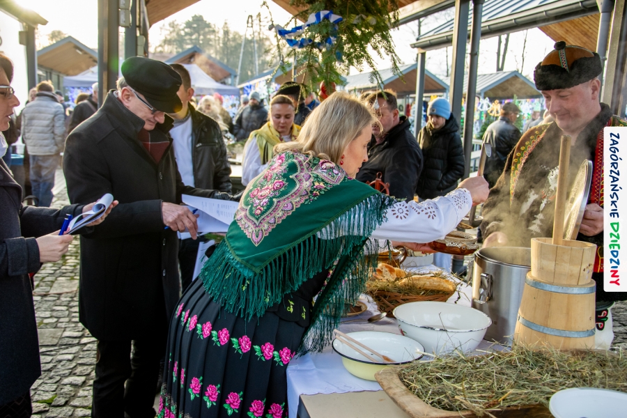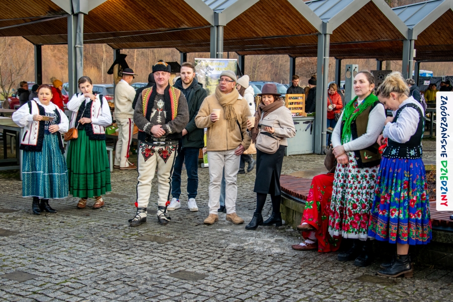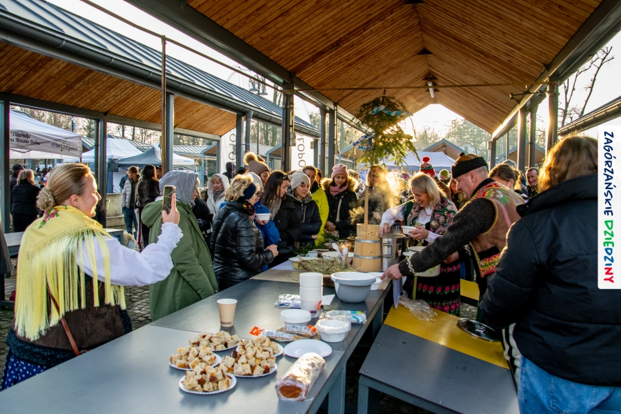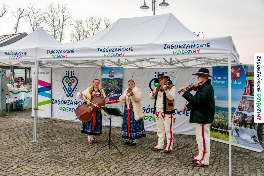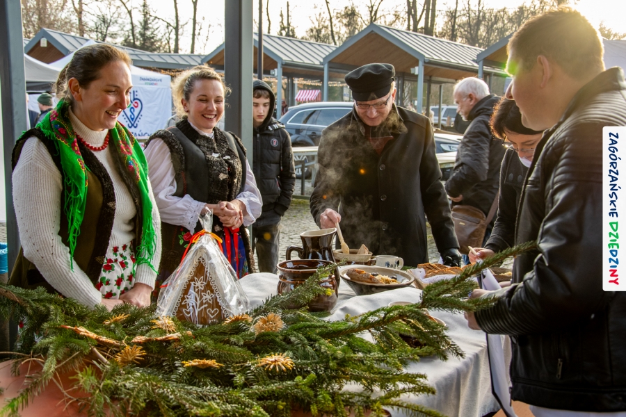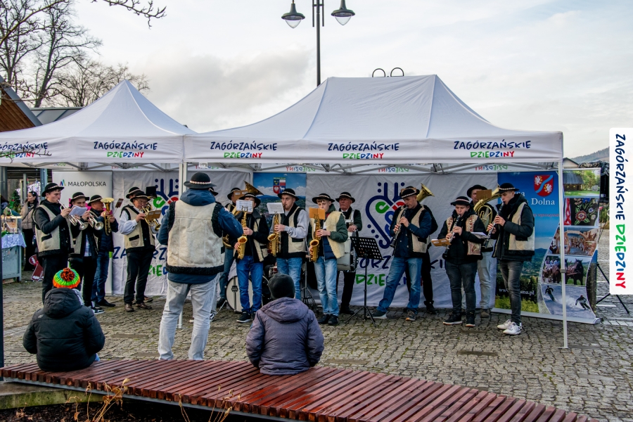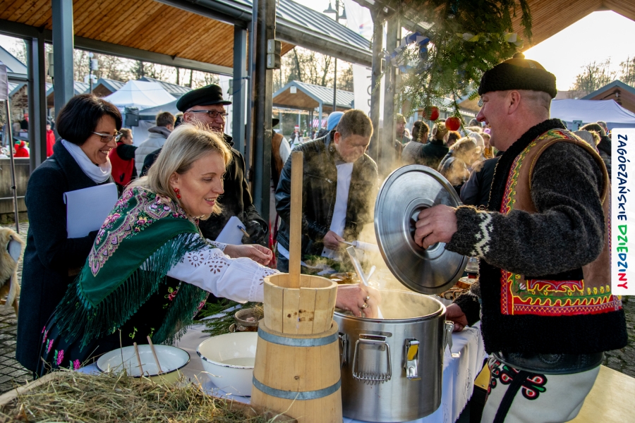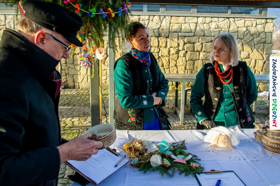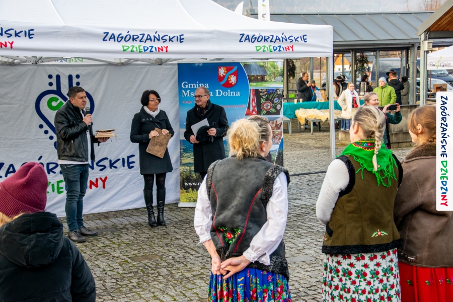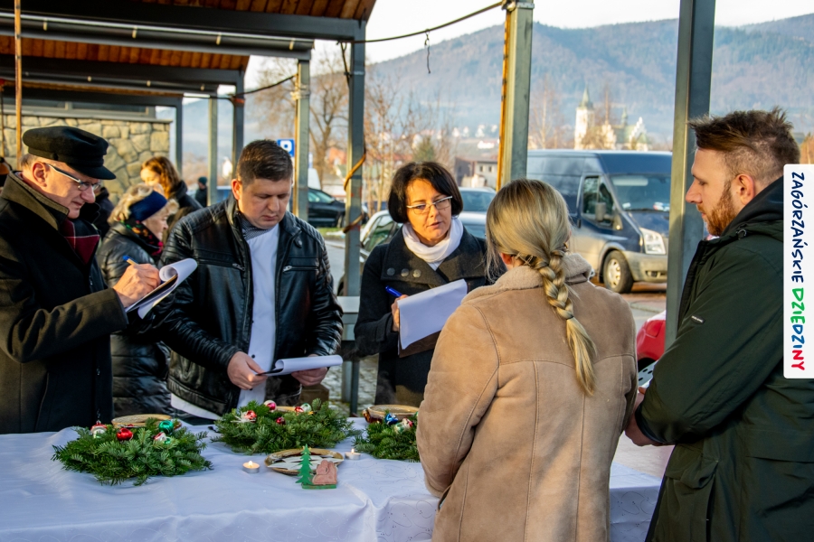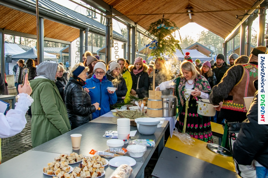 Należy się do tego dnia dorzucić garść podziękowań. Tak więc dziękujemy Stowarzyszeniu Miłośników Kultury Góralskiej „Pod Cyrlom” za trud organizacji IV Konkursu Potraw Wigilijnych „Zagórzańskie Smaki”. Dziękujemy za stałe wsparcie naszej Komisji Konkursowej, w osobach: dr Katarzyna Ceklarz, Paweł Kołodziej i Wojciech Winkel. Dziękujemy Pani Dyrektor Przedszkola Miejskiego nr 2 za możliwość przeprowadzenia warsztatów w starym budynku przedszkola. Dziękujemy KGW Olszówka za poprowadzenie warsztatów z tworzenia tradycyjnych ozdób świątecznych. Dziękujemy za występy: Orkiestrze Dętej OSP w Mszanie Dolnej, Orkiestrze Dętej „Sami Swoi” z Kasinki Małej – Zagródca oraz rodzinnej kapeli „Kościelnioki” z Olszówki. Dziękujemy Piotrowi Woźniakowi z Koniny za dostawę żywego inwentarza, który niezmiennie zachwyca najmłodszych. Kłaniamy się nisko Klaudii Gawronek „za gadkę”, a firmie Dropel za wsparcie i zapewnienie nagłośnienia oraz świątecznego oświetlenia. W końcu dziękujemy naszym tegorocznym wystawcom: