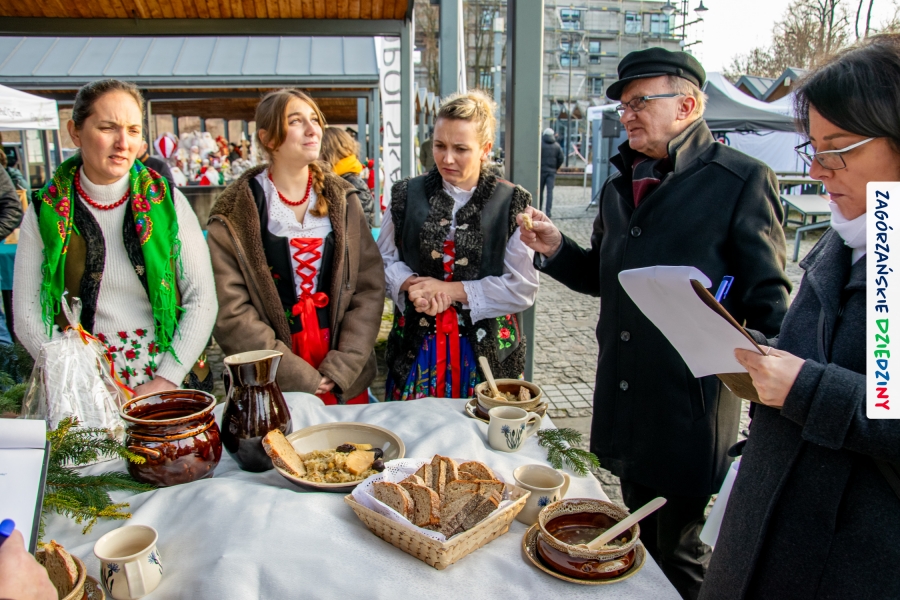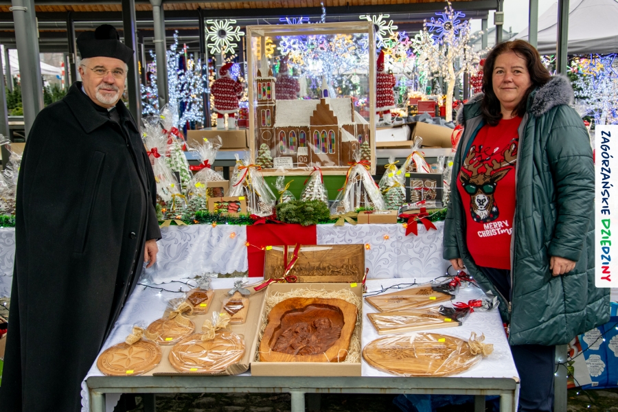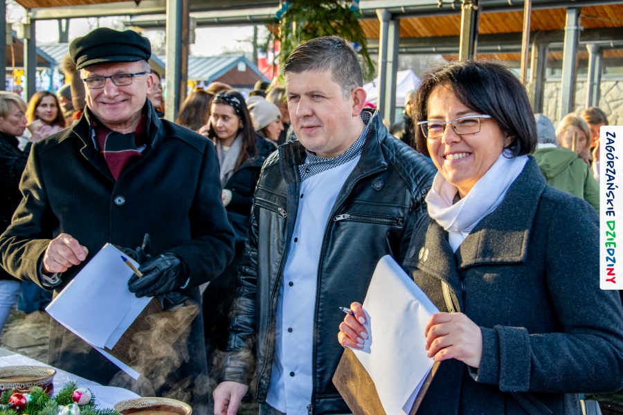 Było coś dla ciała i serducha! Warto wspomnieć, że mieliśmy prawdziwe duchowe wsparcie w postaci Księdza Dziekana Jana Antoła, Kustosza Sanktuarium Świętego Michała Archanioła, który z zagórzańskimi włodarzami: Burmistrz Miasta Agnieszką Orzeł, Wójtem Gminy Niedźwiedź Rafałem Rusnakiem oraz Stanisławem Antoszem Wiceprzewodniczącym Rady Miejskiej uroczyście otworzył V Zagórzański Jarmark Bożonarodzeniowy. Ksiądz Proboszcz trafnie podkreślił, że warto zawsze docenić talent i dzieła ludzkich rąk – „ci co zrobili niech się cieszą, jak sprzedadzą, a ci co kupią, niech się cieszą, że kupili”. Nic dodać, nic ująć - z bożym błogosławieństwem mogliśmy rozpocząć nasze, zagórzańskie wydarzenie.