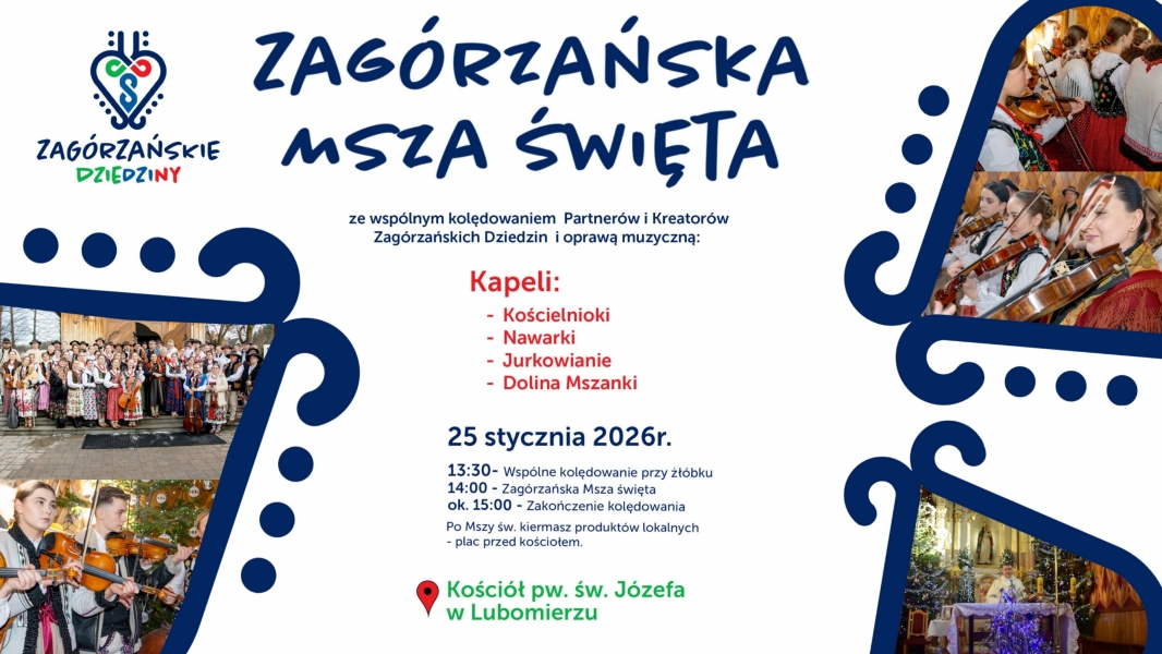 Oprawę muzyczną Eucharystii zapewnią partnerzy i kreatorzy marki lokalnej Zagórzańskie Dziedziny. Przygrywać nam będą kapele: Kościelnioki, Nawarki, Dolina Mszanki oraz Zespół Jurkowianie.