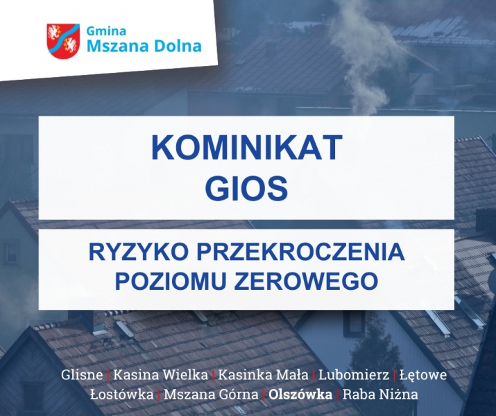 Informuje się, że w dniu 19 stycznia 2026 r., na terenie powiatu limanowskiego, występuje ryzyko przekroczenia średniodobowego poziomu dopuszczalnego pyłu zawieszonego PM10 w powietrzu.