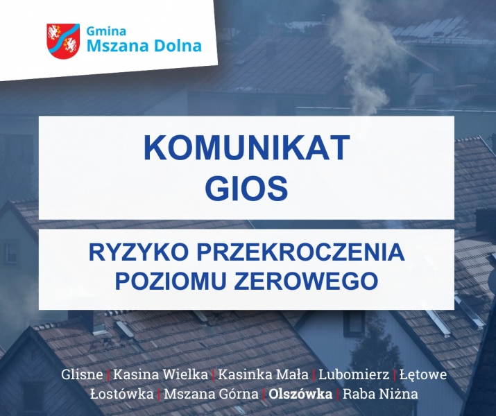 Informuje się, że w dniu 23 stycznia 2026 r., na terenie powiatu limanowskiego, występuje ryzyko przekroczenia średniodobowego poziomu dopuszczalnego pyłu zawieszonego PM10 w powietrzu.