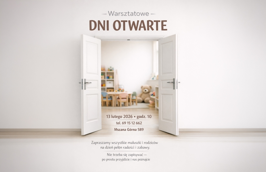 Informujemy, że dzisiaj, 13 lutego 2026 r. (piątek), w godzinach 10:00–14:00, odbywają się Warsztatowe Dni Otwarte w Gminnym Żłobku „Zagórzańskie Smyki” w Mszanie Górnej.