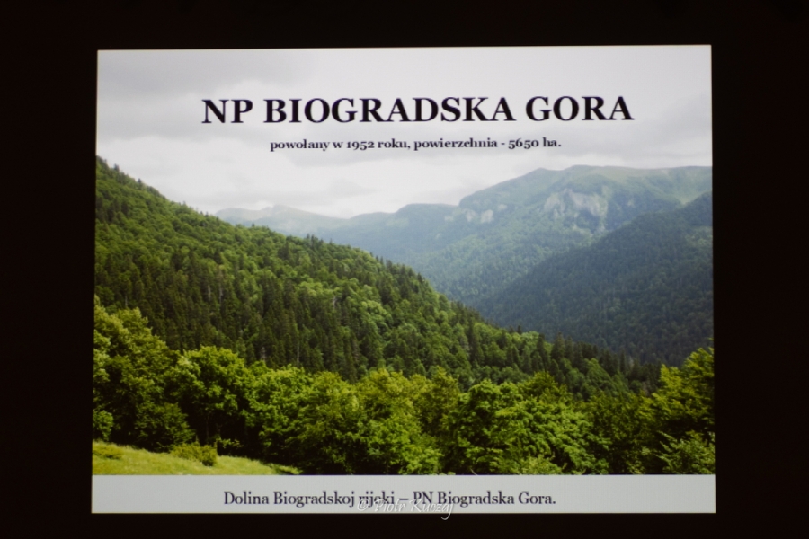 Następnie prelegent przedstawił jeden z najstarszych obszarów chronionych w Europie, którego ochrona sięga 1878 roku. Sercem parku jest Biogradzka Puszcza - jeden z ostatnich dziewiczych lasów na kontynencie. Podkreślono imponujące rozmiary buków, jaworów i jodeł oraz niezwykłe bogactwo flory liczącej około 2000 gatunków roślin, w tym liczne endemity.