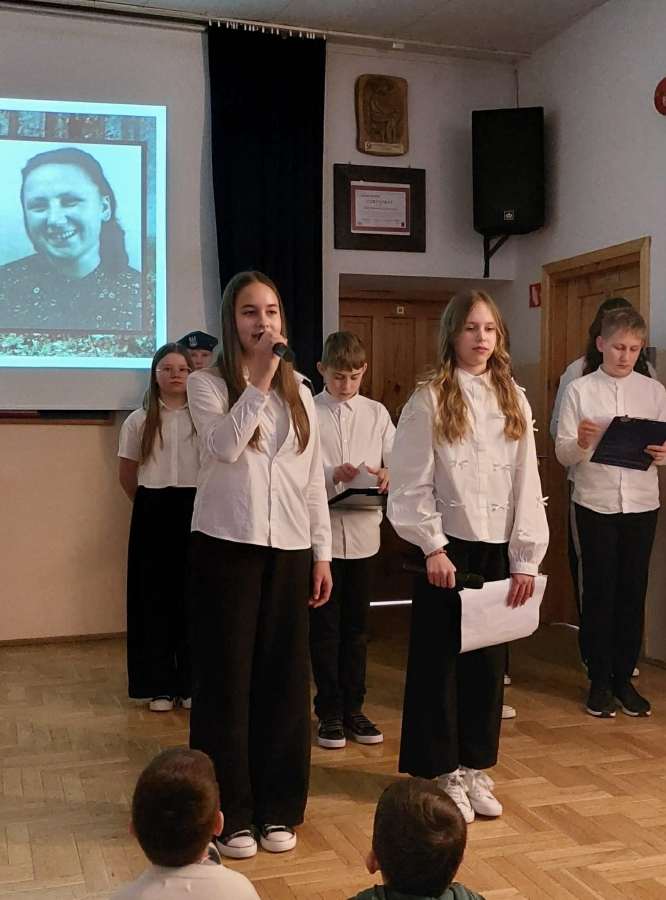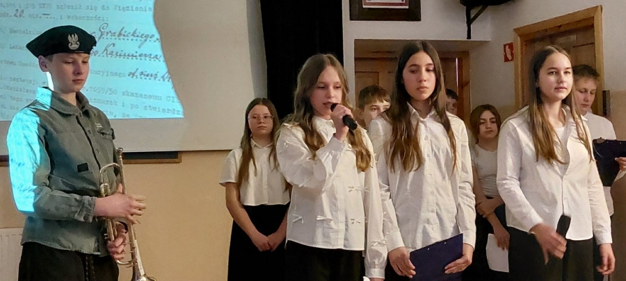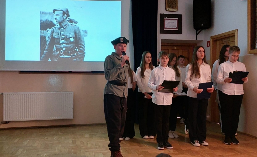 Uczniowie w ciekawy i poruszający sposób przedstawili losy żołnierzy podziemia niepodległościowego. W trakcie apelu przypomniano, że 1 marca obchodzimy Narodowy Dzień Pamięci Żołnierzy Wyklętych – święto ustanowione w hołdzie tym, którzy pozostali wierni swoim wartościom i ojczyźnie mimo trudnych i niebezpiecznych czasów. Część artystyczna została starannie przygotowana. Nie zabrakło wzruszających wierszy, krótkich scenek oraz informacji historycznych, które pozwoliły lepiej zrozumieć realia powojennej Polski. Szczególne wrażenie zrobiła piękna oprawa muzyczna – nastrojowe pieśni patriotyczne podkreśliły podniosły charakter uroczystości i wprowadziły wszystkich w atmosferę zadumy i refleksji. W tle wyświetlana była prezentacja multimedialna zawierająca archiwalne fotografie oraz najważniejsze informacje o bohaterach tamtych lat. Dzięki temu apel był nie tylko wzruszający, ale również bardzo wartościowy pod względem edukacyjnym. Była to cenna lekcja historii i patriotyzmu, która na długo pozostanie w pamięci jej uczestników.
