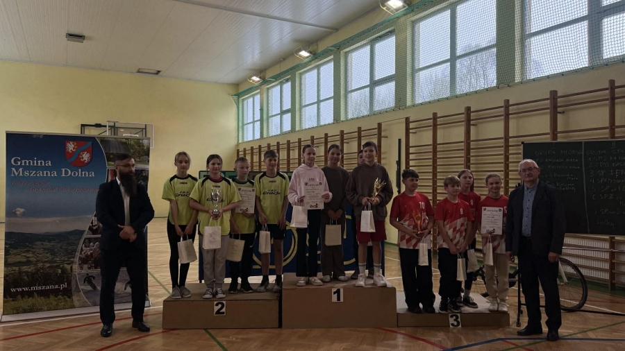 Ostatnim punktem turnieju było wręczenie medali, pucharów i dyplomów, za najwyższe lokaty oraz medali i dyplomów za udział w turnieju. Tą uroczystą część turnieju uświetnił swoją obecności Wójt Gminy Mszana Dolna Pan Mirosław Cichorz, który pogratulował wszystkim uczestnikom wiedzy i zaangażowania oraz opiekunom za przygotowanie uczniów do turnieju.
