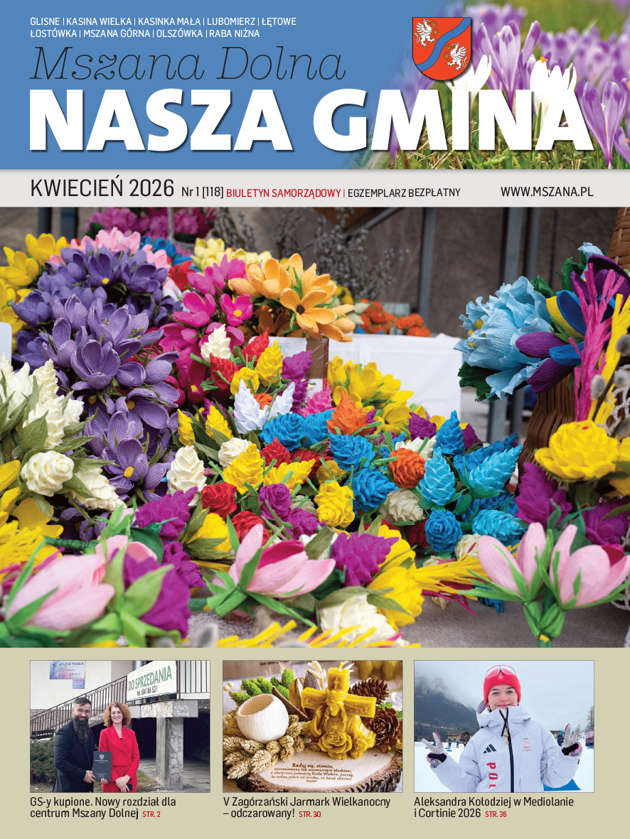 W Biurze Obsługi Klienta Urzędu Gminy Mszana Dolna dostępny jest nowy numer gazety „Nasza Gmina Mszana Dolna” (kwiecień 2026). Wszystkich zainteresowanych zapraszamy do pobrania bezpłatnego egzemplarza periodyku samorządowego, w godzinach pracy Urzędu.