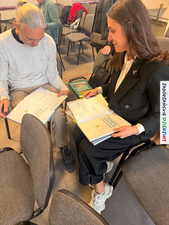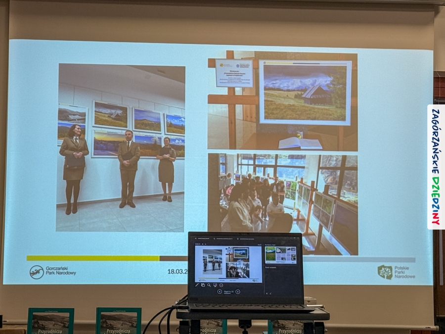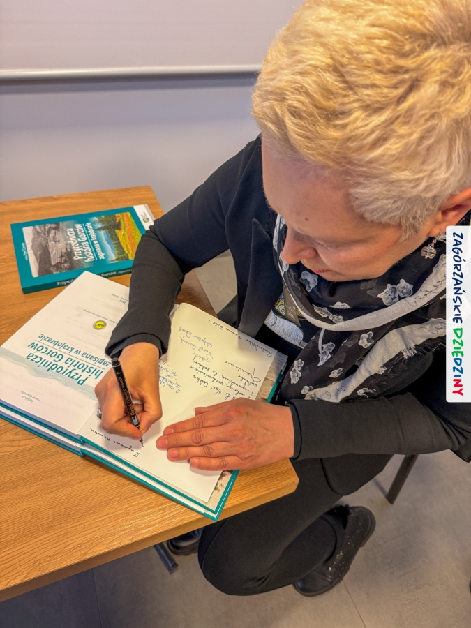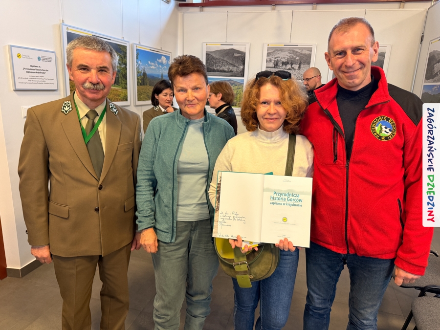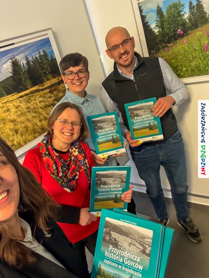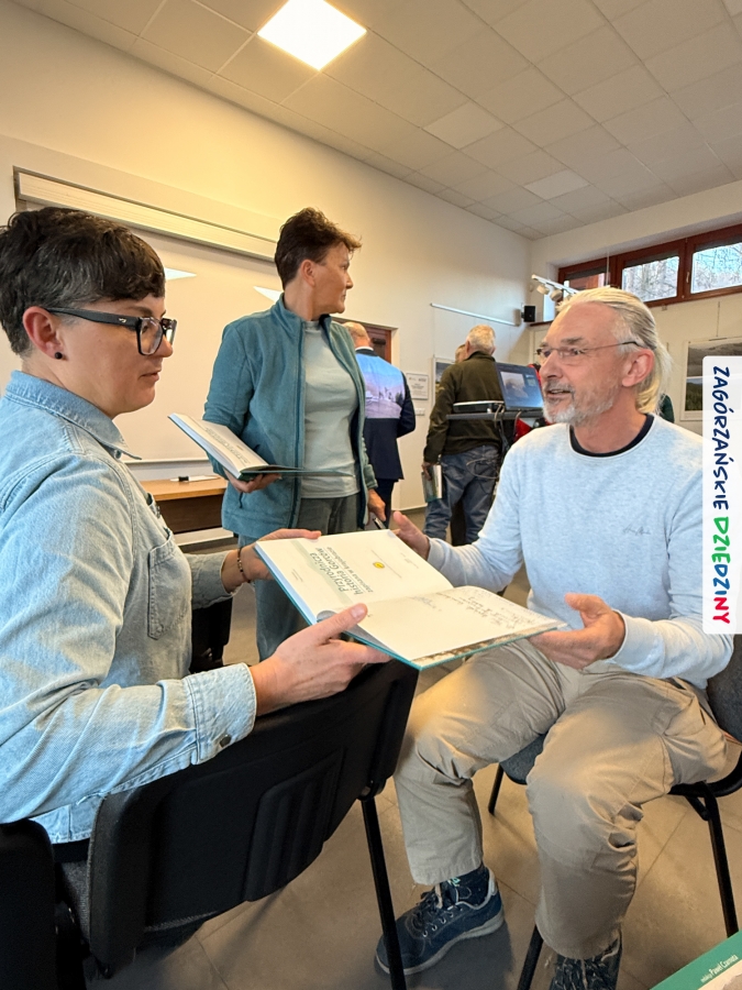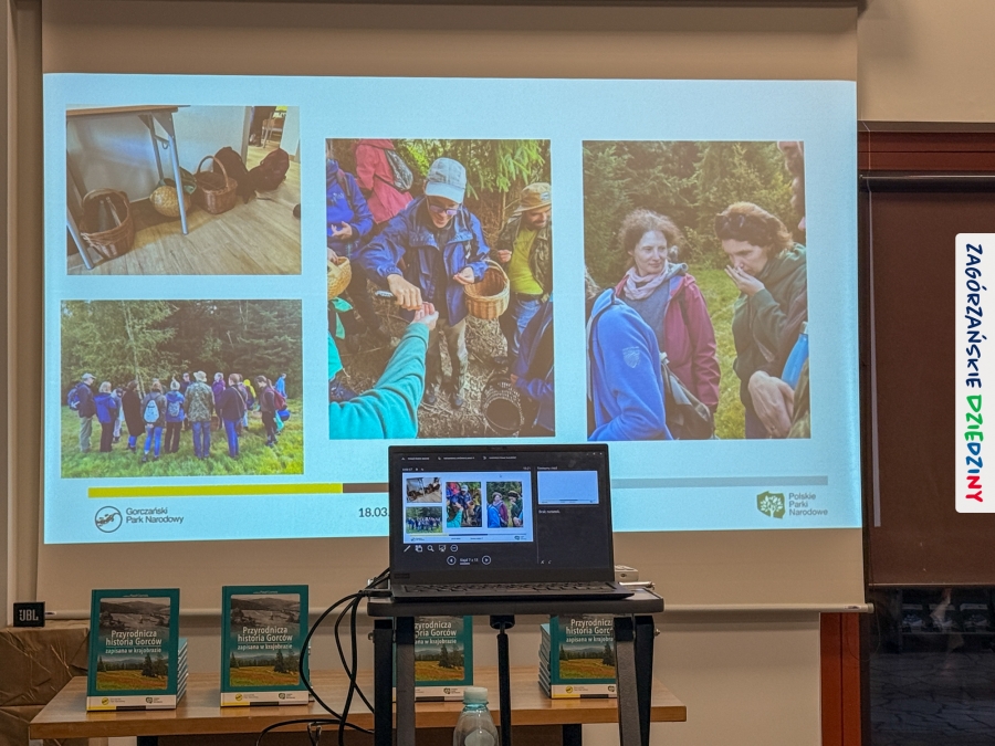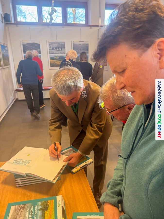 Celem całego przedsięwzięcia projektowego jest pokazanie znaczenia krajobrazu w kontekście bioróżnorodności i podkreślenie potrzeby jego ochrony i w takiej właśnie perspektywie przeprowadzono prelekcje prezentujące drukowany efekt działań pracowników naukowych czołowych uczelni z południa Małopolski oraz GPNu. Niezwykle klimatyczna opowieść wygłoszona spokojnym głosem przez dr hab. inż. Pawła Czarnotę, prof. UR (redaktora książki), poparta przecudnej urody fotografiami, przeniosła wszystkich w gorczańskie ostępy. To była niezapomniana podróż i niezwykłe doznania. Na „afterku” można było skorzystać z przebywania w tak zacnym towarzystwie i upolować osobiste dedykacje oraz autografy współautorów tej naukowej pozycji. Swoje pierwsze kroki skierowaliśmy do dr. inż. Janusza Tomasiewicza, wieloletniego dyrektora GPN, który w 2021 r. podpisał w imieniu tej instytucji partnerstwo z Zagórzańskimi Dziedzinami. Ustawiliśmy się też w kolejce do tego, którego głos urzekł nas na początku spotkania (prof. Czarnoty),  dr hab. inż. Agnieszki Ziernickiej – Wojtaszek, prof. URK, dr. hab. Łukasza Przybyłowicza, mgr. Zbigniewa Żurka i Marioli Stefanik.  Nie odmówiliśmy sobie przyjemności poproszenia o autograf  mgr. inż. Marka Kurzeję, dyrektora Gorczańskiego Parku Narodowego, oczywiście wszystko udokumentowaliśmy fotograficznie, a do zapozowania do zdjęć zaprosiliśmy m. in. Krystynę Tomasiewicz i Annę Kurzeję, edukatorki GPN, kreatorki Zagórzańskich Dziedzin, czy Martę Mleczko vel Trasa dla bobasa i Michała Fiedora (przewodników). Ucięliśmy sobie również krótką pogawędkę z dawno nie widzianymi przewodnikami: Anną Płachczewską – Rogozińską i Piotrem Rogozińskim. W rękach każdy z nas dumnie dzierżył nową, pachnącą jeszcze drukiem książkę i jak trofeum traktował poczynione w niej zapiski. Teraz, po jej lekturze, mamy powinność przekazywać tę wiedzę dalej.