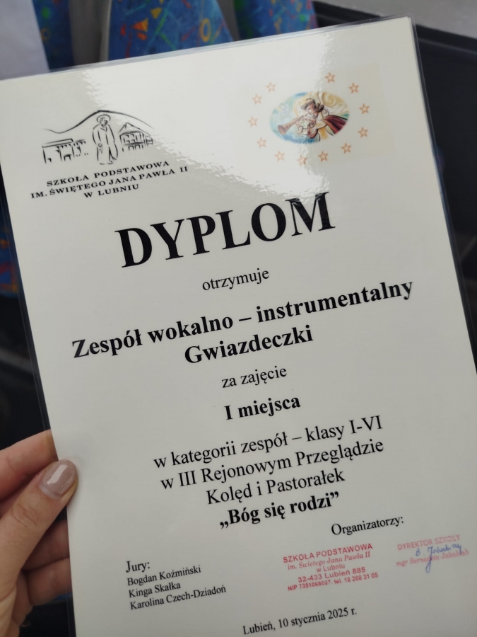 Przedłużając tę wspaniałą atmosferę, w styczniu b.r.,  uczniowie Szkoły Podstawowej nr 3 w Kasince Małej wzięli udział w III Przeglądzie Kolęd i Pastorałek "Bóg się rodzi" zorganizowanym przez Szkołę Podstawową im. Świętego Jana Pawła II w Lubniu.