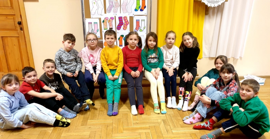 W tym dniu zorganizowano akcję pt. „Dzień Kolorowej Skarpetki”, która miała na celu zwiększenie świadomości społecznej na temat Zespołu Downa, propagowanie praw i dobra ludzi z tą wadą genetyczną i integrację z nimi. Aby podkreślić charakter tego dnia, uczniowie przyszli w kolorowych skarpetkach nie do pary i kolorowych ubraniach, co miało na celu symbolizować to święto. Najmłodsi podopieczni bawili się na świeżym powietrzu, a po powrocie wykonali Panią Wiosnę. Wszyscy wykazali się pomysłowością i talentem plastycznym. Klasy I-III przygotowały kanapki z zieleninką m.in. ogórkiem, rukolą i dodatkami serowymi, które ze smakiem kosztowali na jadalni. Natomiast starsi uczniowie ujawnili swoje zdolności cukiernicze, wypiekając gofry i przystrajając je słodkościami.