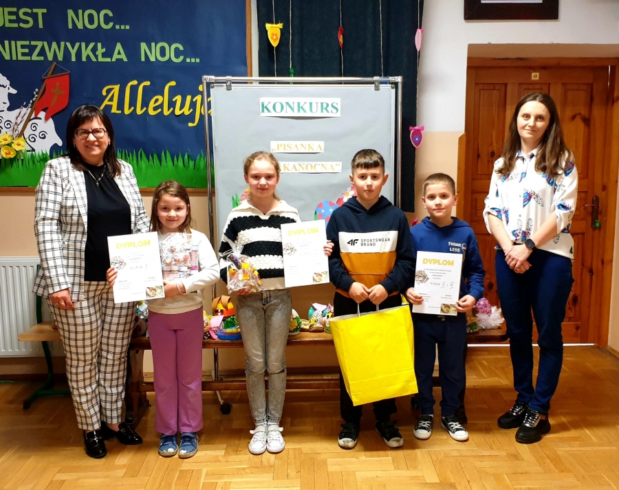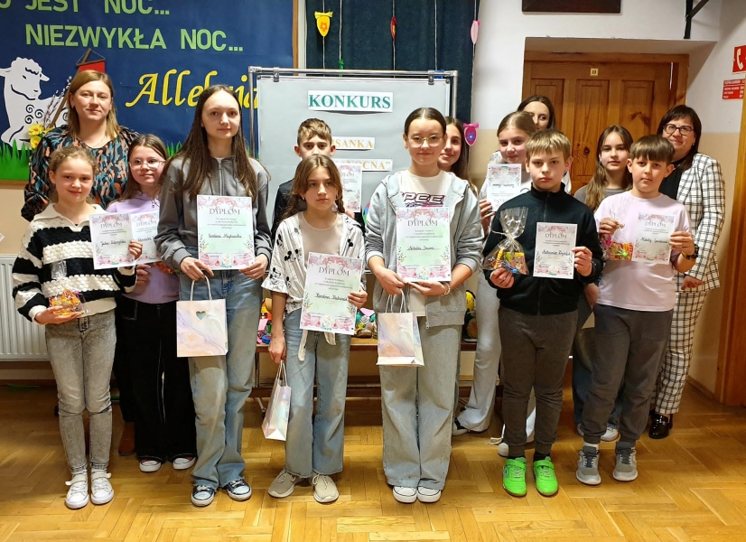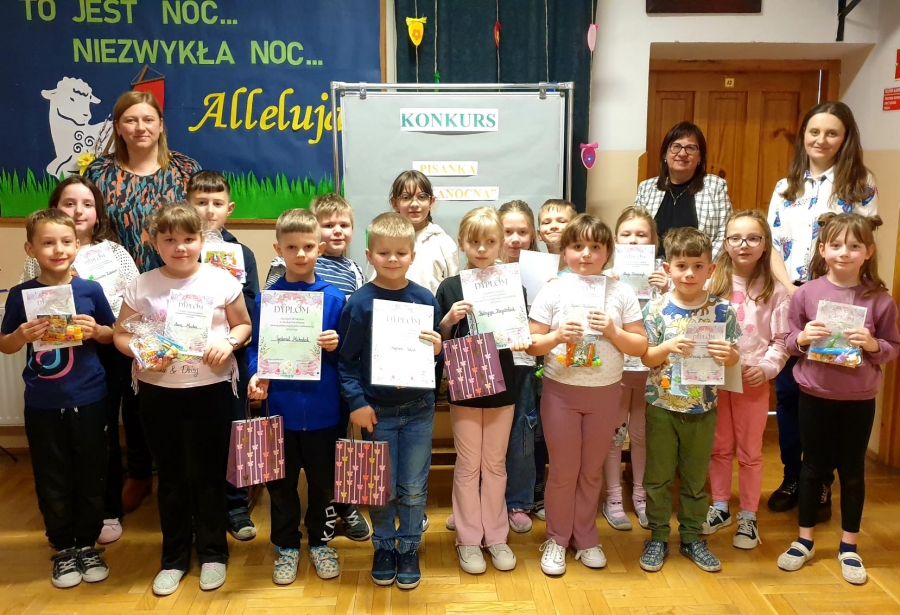 Jury mało nie lada wyzwanie, gdyż wielu uczniów przygotowało przepiękne prace. Nagrody zostały przyznane w trzech kategoriach: przedszkole, klasy I-III i klasy IV-VIII. Wszyscy uczniowie biorący udział w konkursie otrzymali upominki ufundowane przez Samorząd Uczniowski. Dziewięć pisanek zostało wysłanych do Starostwa Powiatowego w Limanowej na konkurs „Stroik wielkanocny”. Podczas wręczenia nagród odbyło się również podsumowanie akcji charytatywnej „Góra Grosza”, w której szkoła bierze udział każdego roku. Tym razem udało się zebrać 627 zł (19 kg 557g monet). Klasy, które nazbierały najwięcej, otrzymały nagrody ufundowane przez Samorząd Uczniowski.